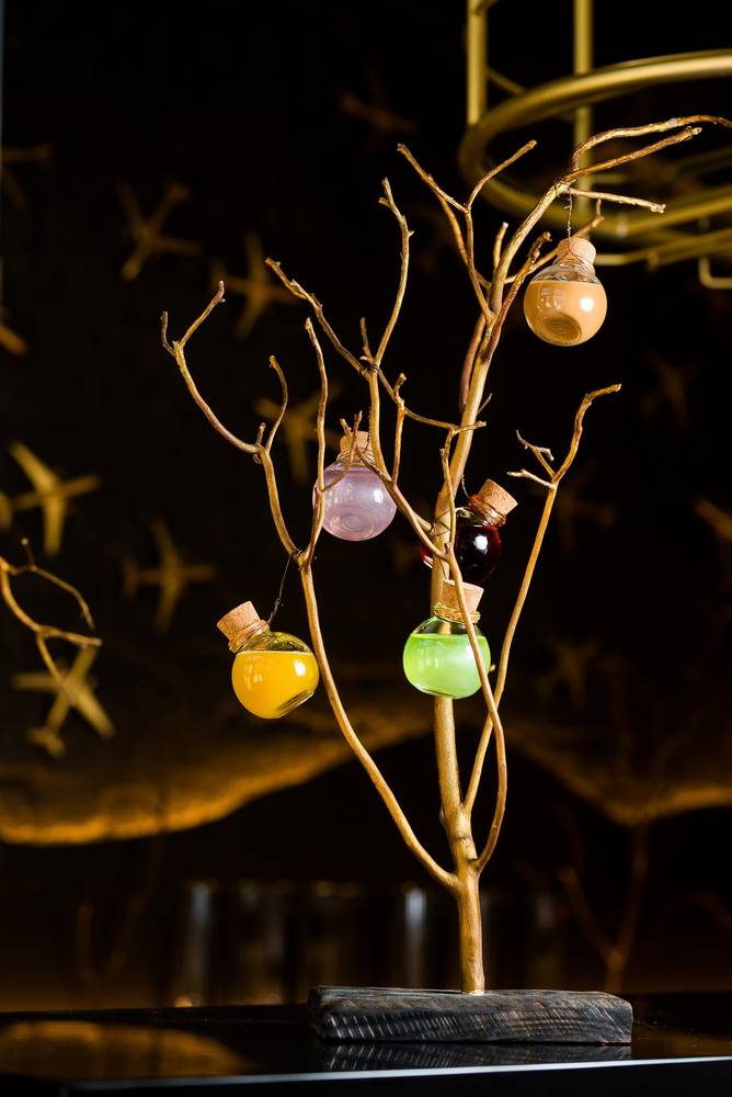 Среди заведений с необычной подачей это выделяется тем, что коктейли наливают в бокалы-птички, а «Шасси» и вовсе подают в пробирке. На компанию можно заказать шот-сет «Дерево желаний», в котором прямо на дереве развесили маленькие баночки с пятью разными вкусами.