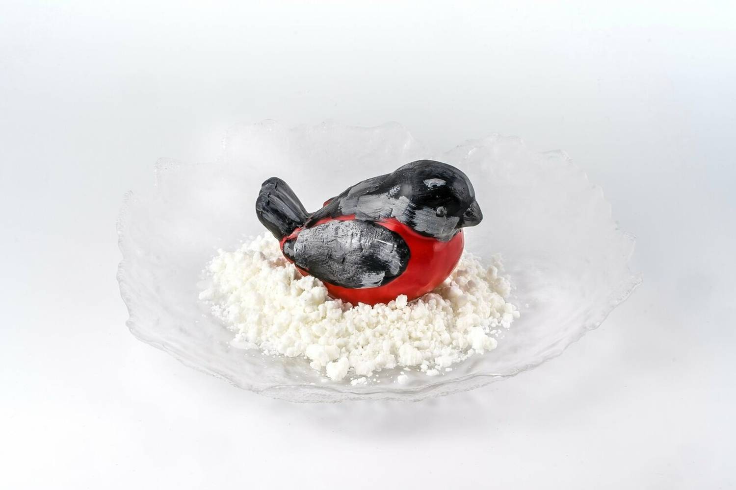 Здесь салаты подают в тарелках со стеклянной матрешкой сверху. Также готовят оригинальные десерты, например, «Снегирь», который расписывают вручную, или же вариант в виде мухомора.