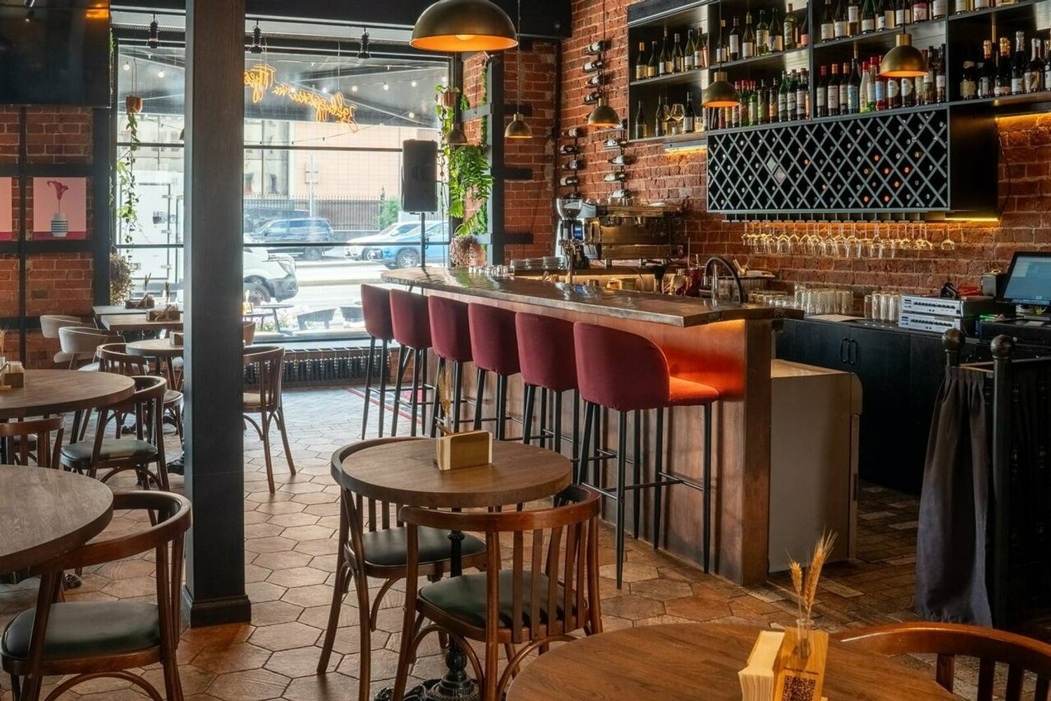 Это не просто стильный гастропаб, а настоящая арт-галерея с картинами современных художников. Сам интерьер — тоже словно часть экспозиции: грубоватые кирпичные стены, яркий узорчатый ковер, металлические стеллажи с вином. Жизнь здесь особенно кипит по выходным, когда играют диджей-сеты.