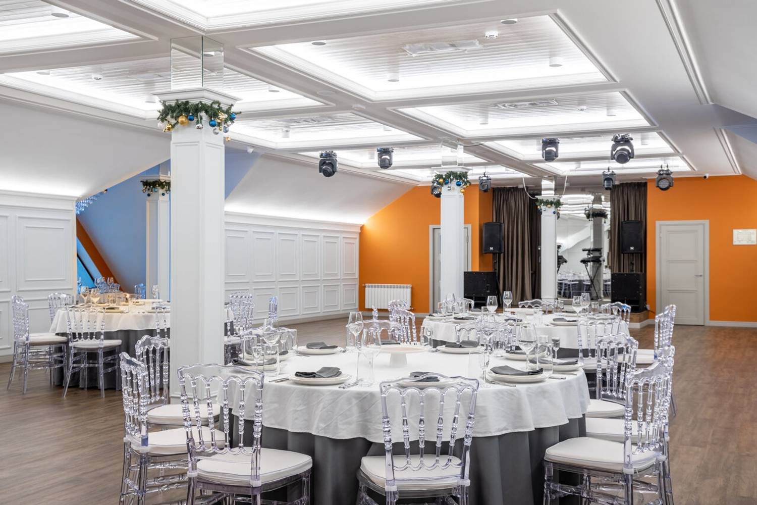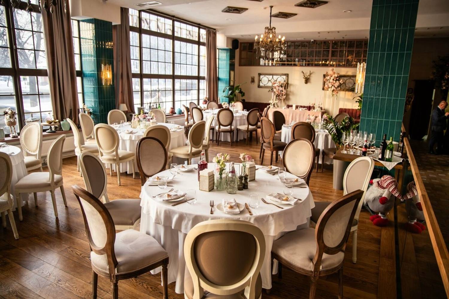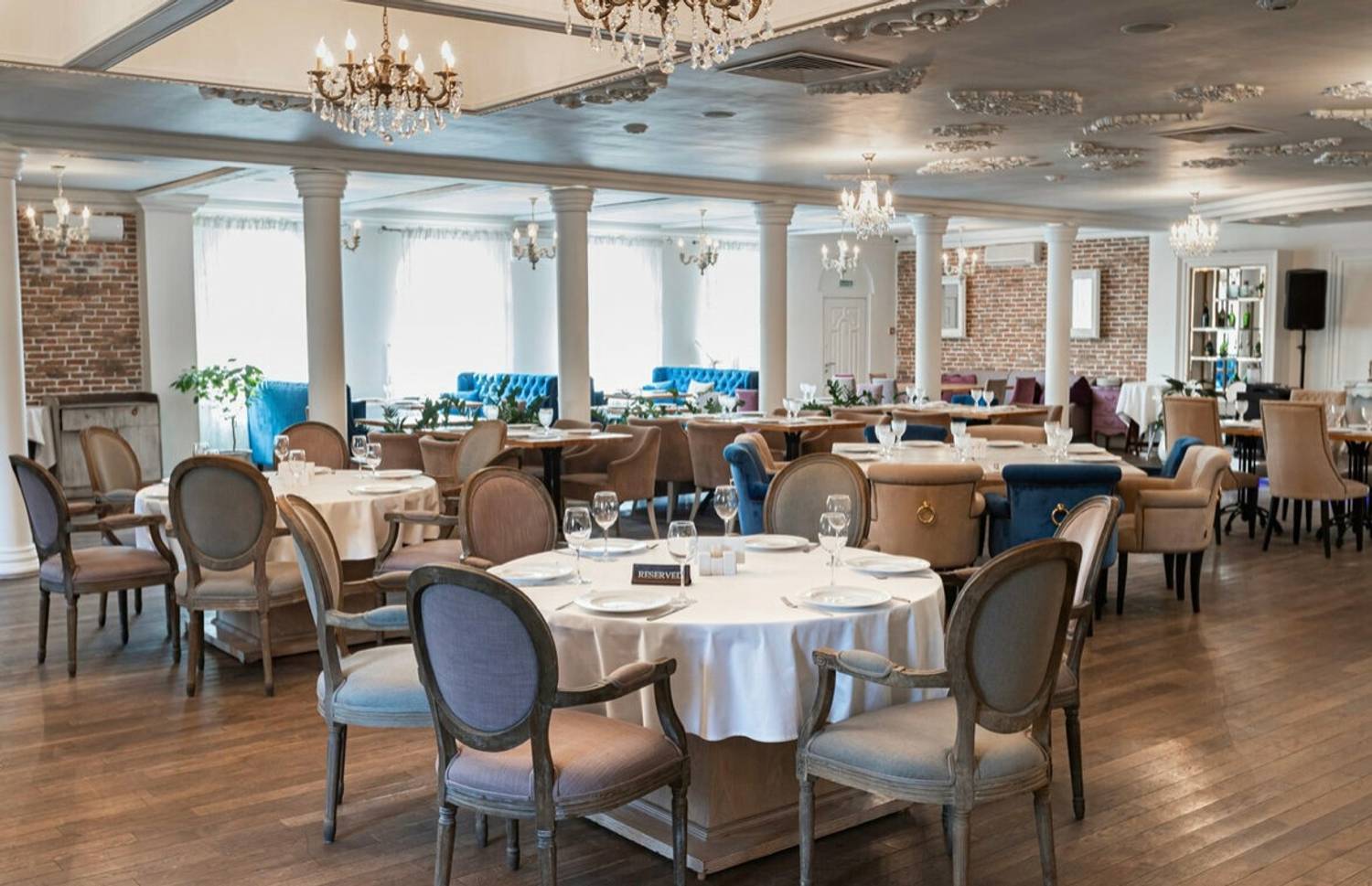 Элегантный ресторан и банкетная площадка на Ленинградском шоссе от Resto-Group by Mavlyutov. Интерьеры здесь выдержаны в стиле английской классики: резные стулья, хрустальные люстры, винтажные часы. Пространство подходит для камерных свадеб и масштабных торжеств: есть уютные кабинеты, просторный зал с панорамными окнами и даже детская комната для маленьких гостей.