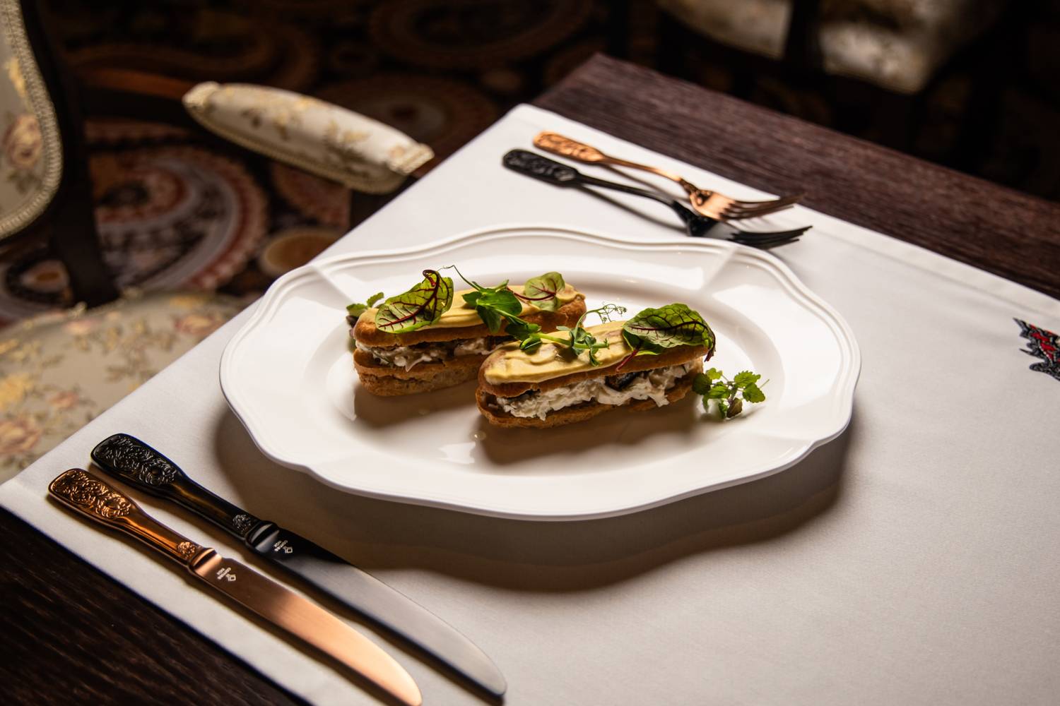 Ресторан-артсалон в кластере ЗИЛарт, где русскую еду предлагают пробовать в интерьерах, напоминающих декорации к спектаклю. Основной зал со стульями в стиле барокко и хрустальными люстрами контрастирует с минималистичным белым пространством. В меню сочетаются русские продукты и европейские техники: оленина в можжевеловом маринаде, оливье с перепелкой, фуа-гра с гречкой.