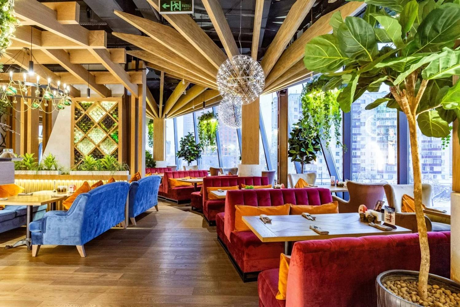 Это сеть восточных ресторанов с сетчатыми люстрами, яркой мебелью и коврами с орнаментами. Меню насыщено разнообразными мясными блюдами от аппетитного каре ягненка до кебаба из баранины по-самаркандски. Здесь в будние дни с 12:00 до 16:00 действует скидка до 30% на все меню. Поэтому на обед можно порадовать себя еще и сборным наполеоном с ягодами.