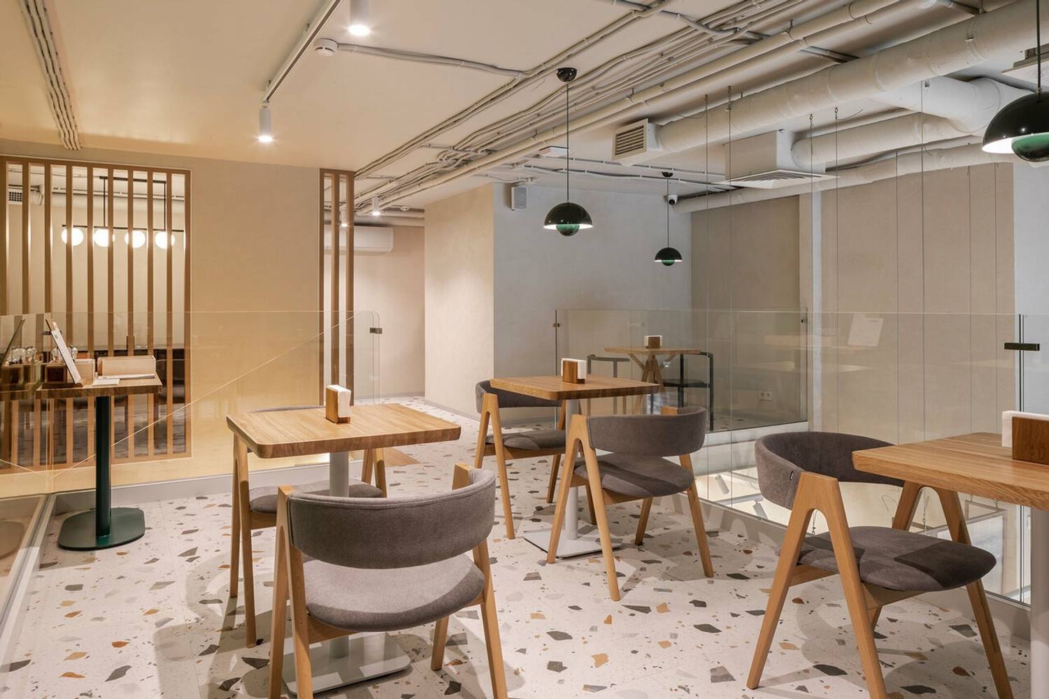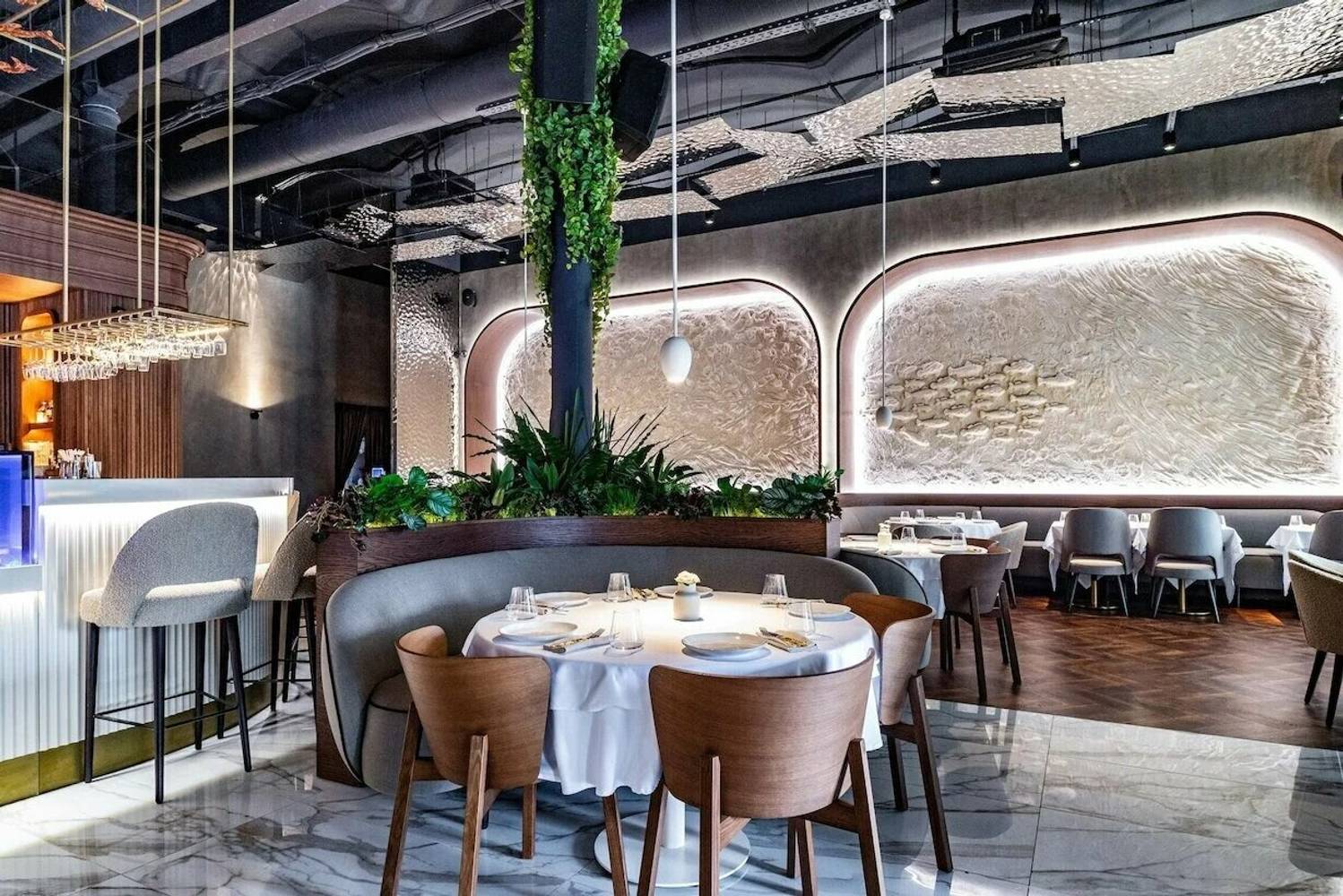Севиче-бар с морским антуражем. Фактурная стена с лепниной в виде стаи рыб создает атмосферу близости к морю. Меню порадует любителей морепродуктов: готовят несколько видов севиче, устрицы и татаки. Также на обед берут уху их трех видов рыб или рамен с уткой. Все это морское разнообразие — со скидкой 10% с 12:00 до 17:00 в будни.