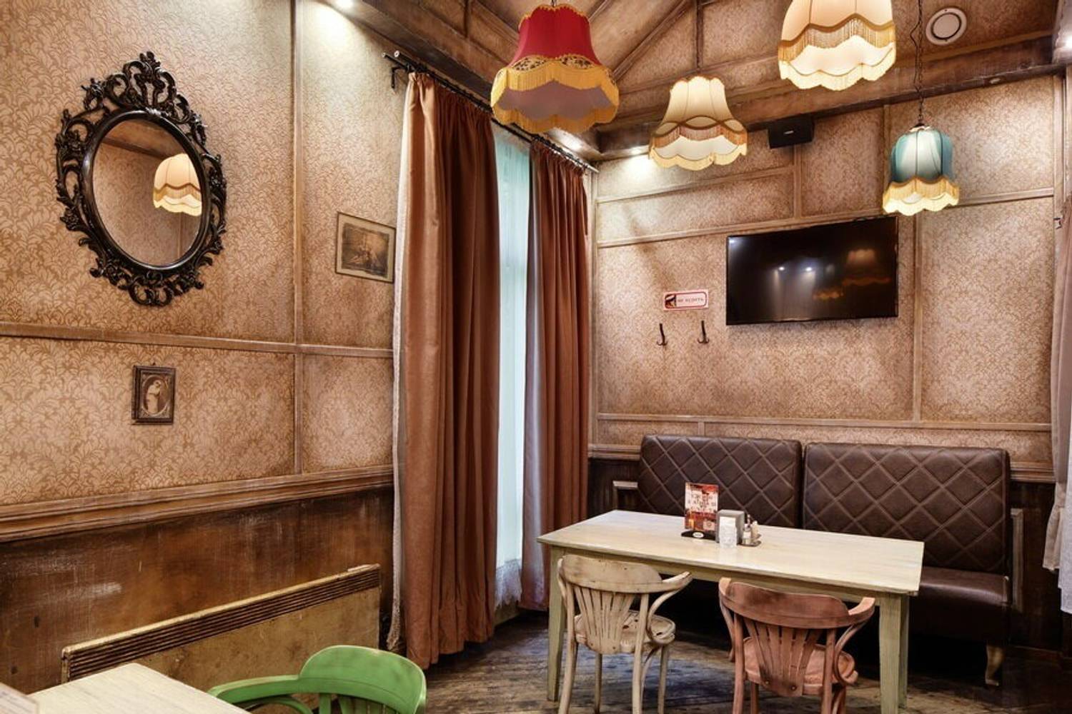 Ресторан в винтажном стиле с люстрами-торшерами, старинными картинами и ажурными зеркалами. В меню собрали русскую классику и европейские блюда вроде мидий под сырной шапкой и уху из судака с лососем. В теплое время года работает веранда. Пообедать в атмосфере ностальгии можно со скидкой 25% с 12:00 до 23:30 в будни.
