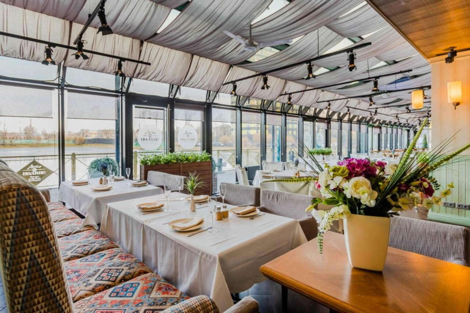 На Свердловской набережной вместо городской суеты вас ждет атмосфера загородного дома с видом на Полюстровские пруды, где плавают лебеди. Вечером вид становится еще привлекательнее благодаря мягкой иллюминации. Внутри встречает дизайн с акцентом на природные элементы: живые растения и деревянная отделка. Дети могут отдохнуть в игровой, пока взрослые изучают меню. Кстати, в нем собрали греческую пиццу, пасту с томлеными щечками и чкмерули с креветками в шпинатном соусе.