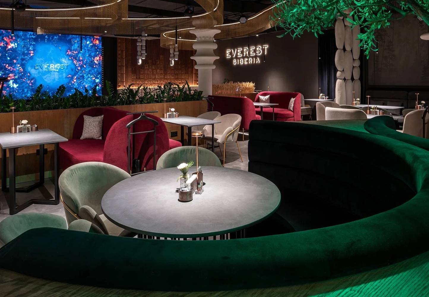 Кальянную карту составили тоже по-разному: от спелых сибирских ягод до авторского каскадного курения. Ключевая особенность меню — сочетание европейской и региональной кухни: от пасты с крабом и рибая до сибирской дичи, утки с клоповкой или пельменей с оленем.