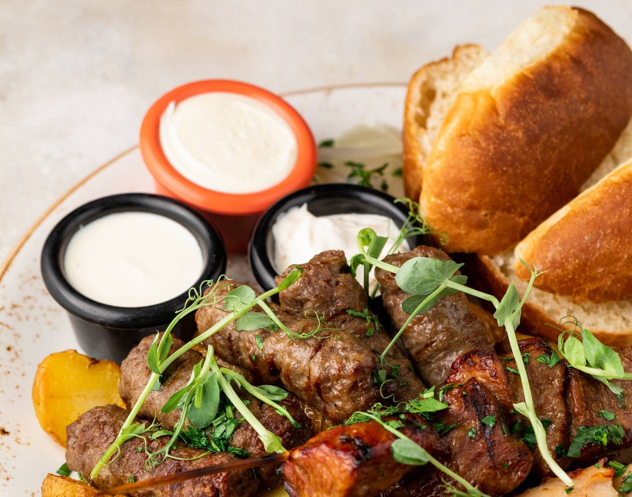 Повара готовят традиционные блюда Сербии и Хорватии: томленую телятину под сачем, сытную плескавицу и чевапчичи с каймаком. Все блюда на гриле подают с запеченным картофелем, луком и домашним хлебом. В барной карте собрали более 30 видов настойки на ракии, например, с пряной вишней, и балканские вина.