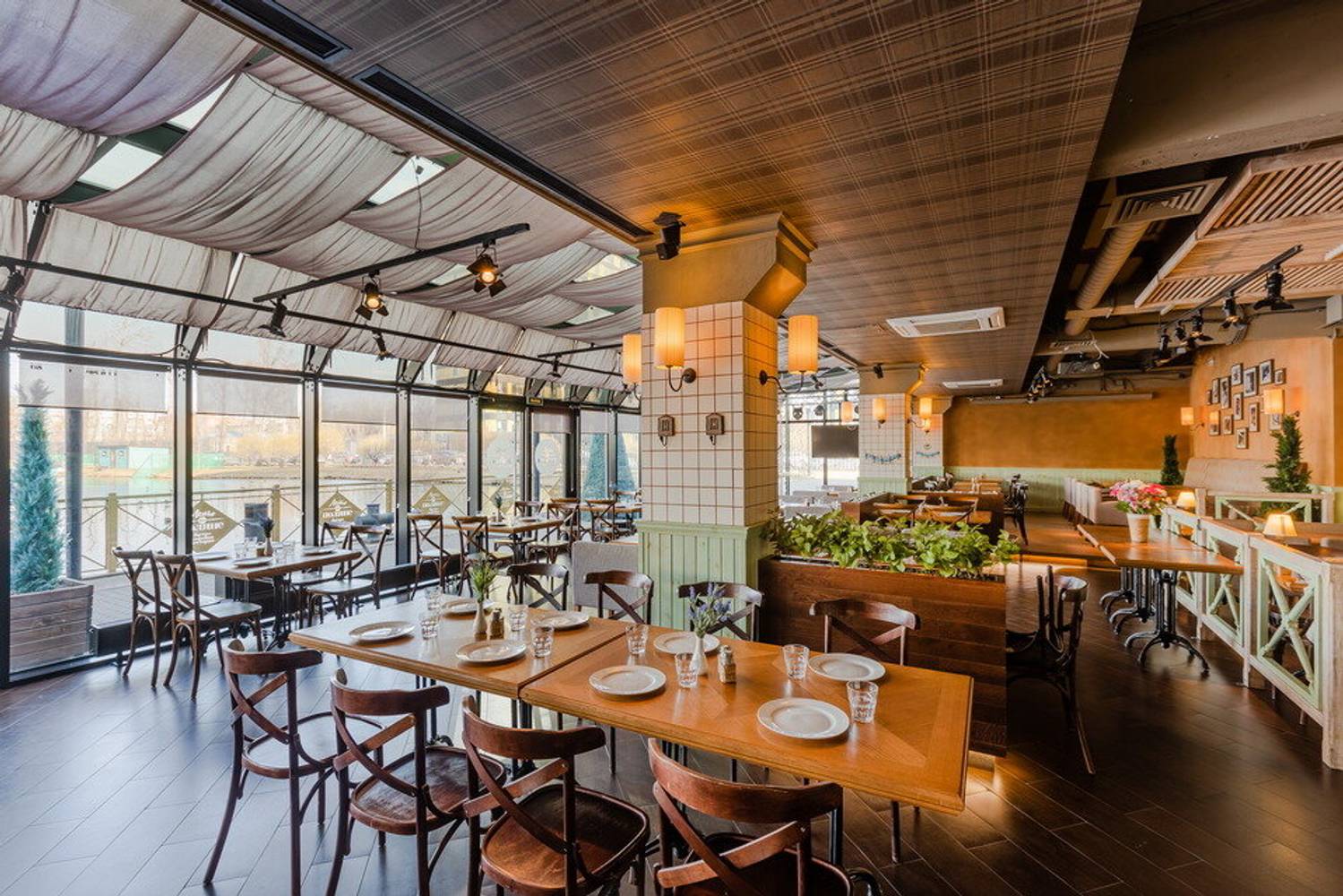Панорамный ресторан прямо у воды в Сестрорецке. Вид захватывает сразу: церковь и озеро Сестрорецкий разлив словно оживают перед глазами. В интерьере удачно сочетаются классика и лофт, а в теплое время года можно погулять в зеленом саду и расположиться в беседке среди гортензий.