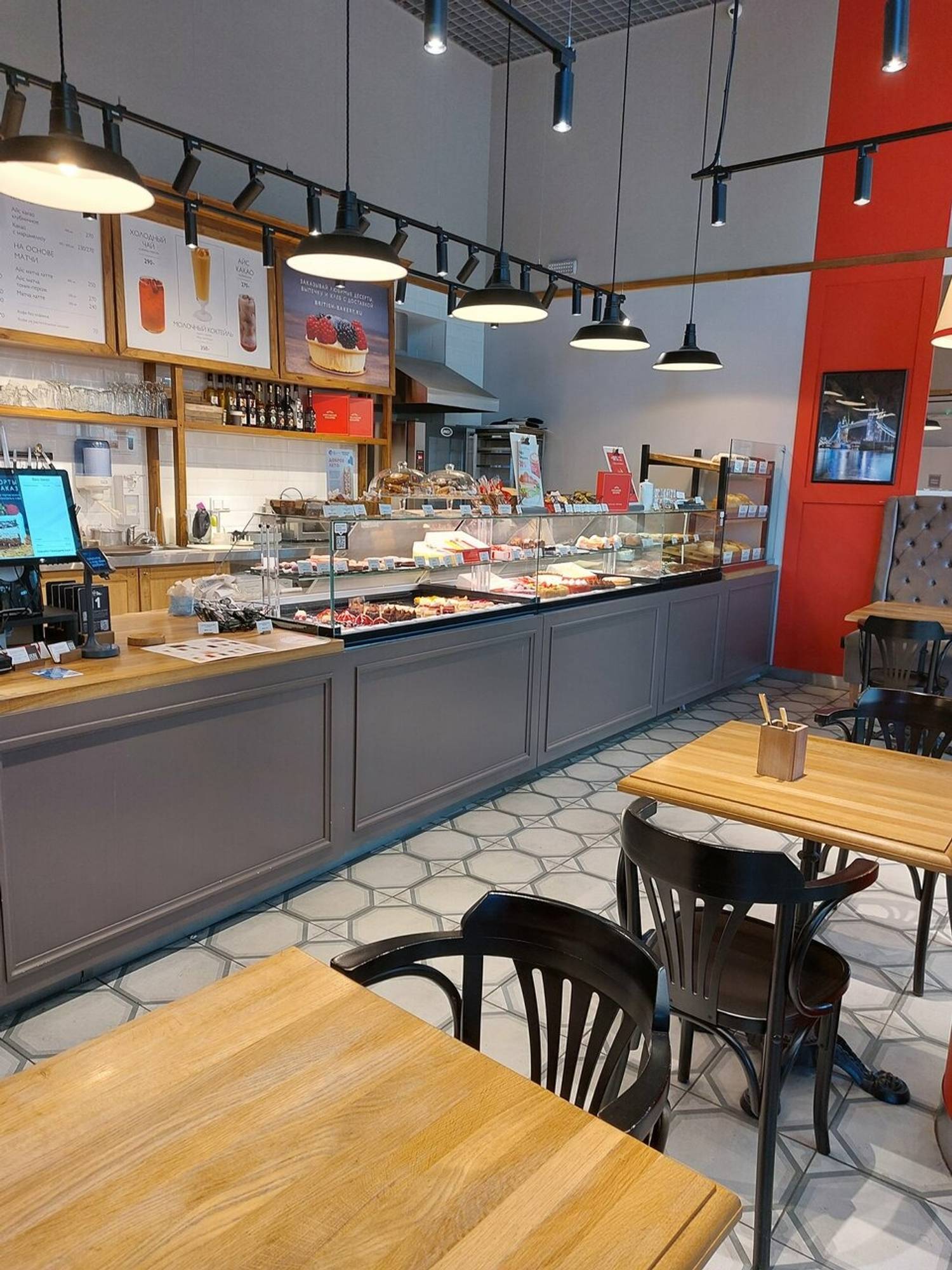 Еда и напитки. В меню завтраки на выбор: от каши до омлета с форелью, а также обеды: салат с курицей и персиком, паста с креветками в стиле алио олио. Готовят выпечку по рецептам кондитера Андрю Парка: слойки, пирожные, сэндвичи, булочки, торты и тёплый хлеб на собственной закваске. Из напитков: эспрессо, капучино, латте, а также авторский какао смородина-клубника и фруктовый чай.
