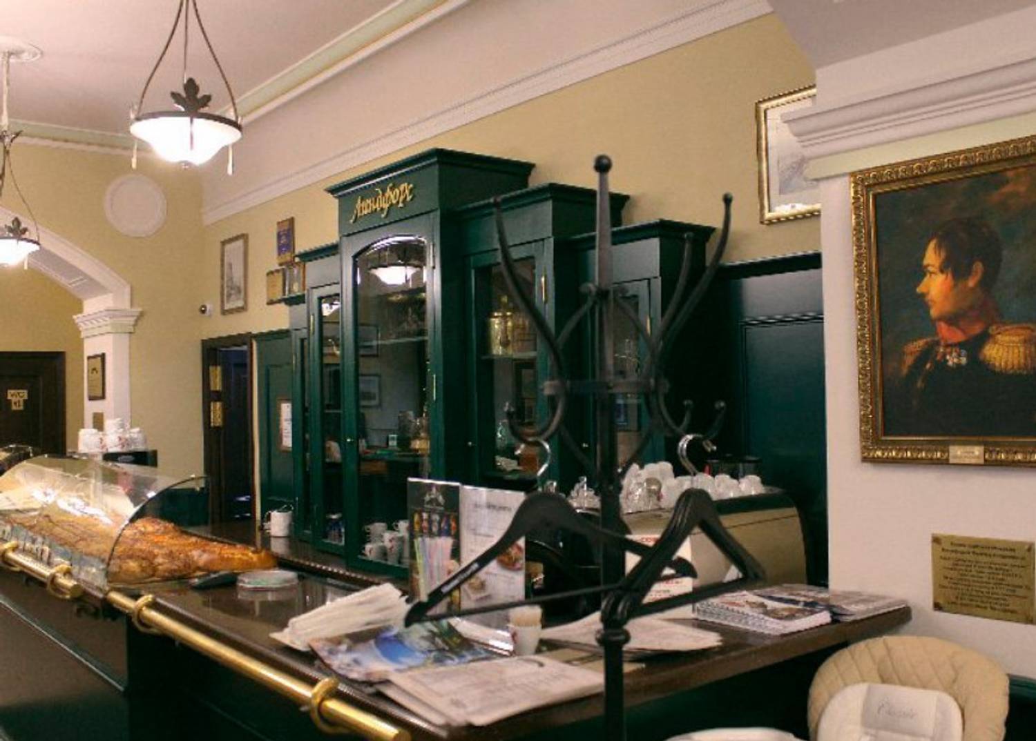 Атмосфера. Интерьеры старинного особняка с арочными проёмами, фигурными зеркалами и паркетом создают камерную атмосферу, отлично сочетаясь с театральной атмосферой. Темное дерево и изумрудные кожаные диваны гармонируют с роскошными люстрами, и все это располагает к неторопливым беседам после спектаклей.
