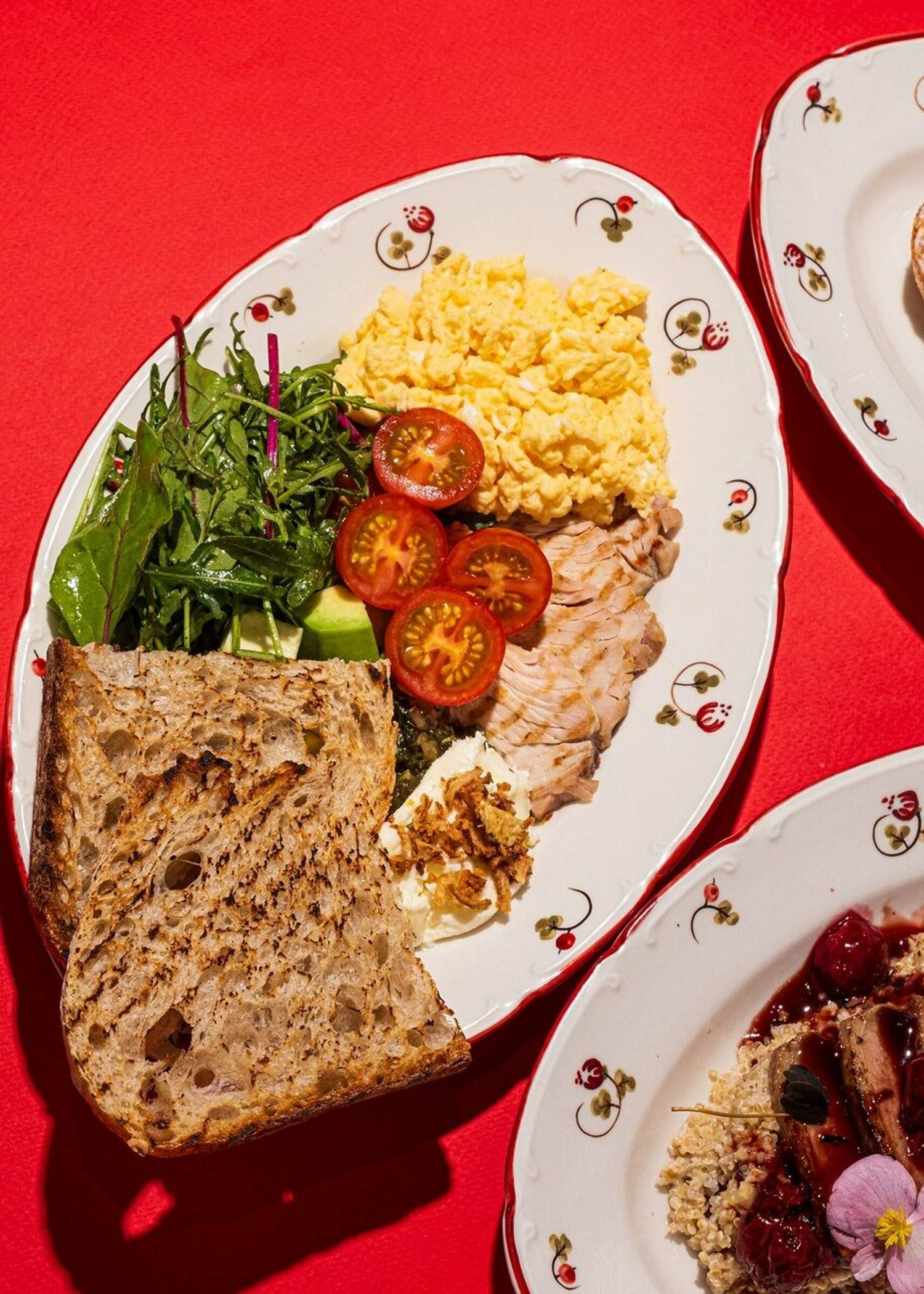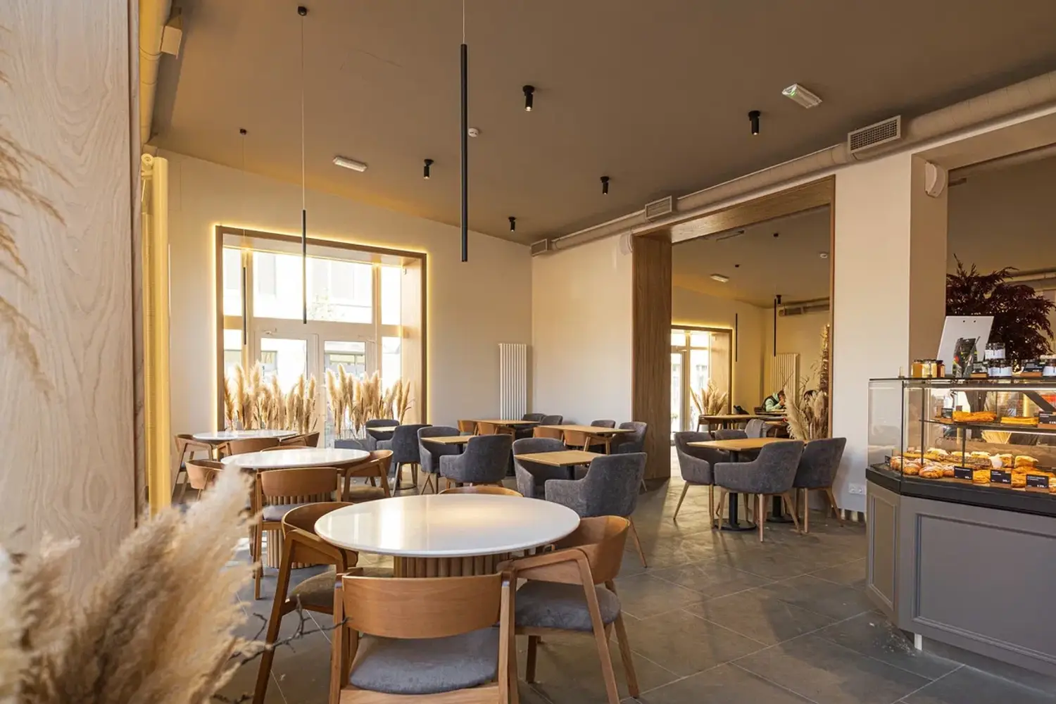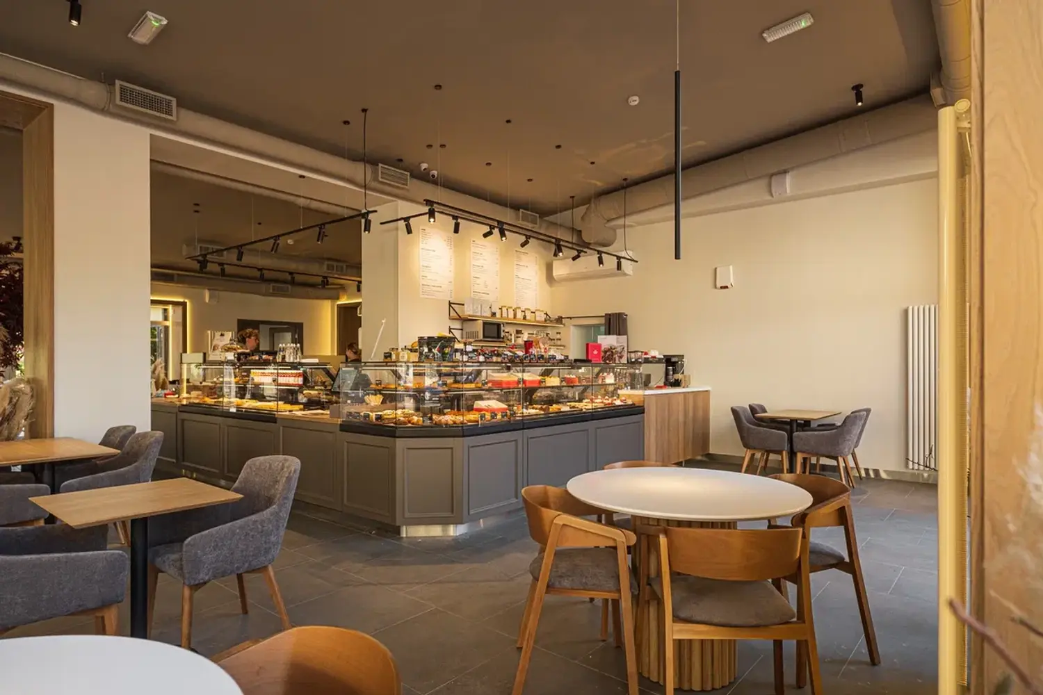 Еда и напитки. В меню разнообразная выпечка: слойки, пирожные, сэндвичи, булочки, торты. Также подают классические кофейные напитки: эспрессо, капучино, латте, которые можно взять с собой. Из еды готовят завтраки, например, омлет с форелью, и основные блюда: томленые щечки в сливочном карри, карбонара и куриная грудка с кремом из брокколи.
