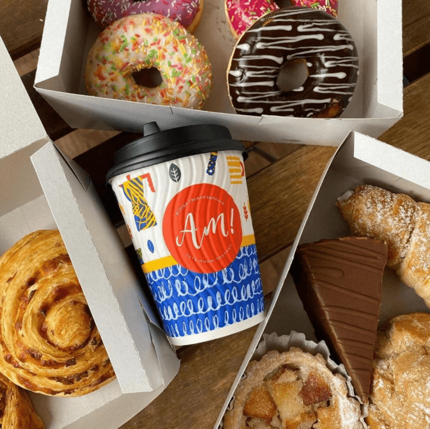 «Ам» по адресу пр. Старо-Петергофский, 42 — пекарня-кофейня с ежедневной выпечкой.