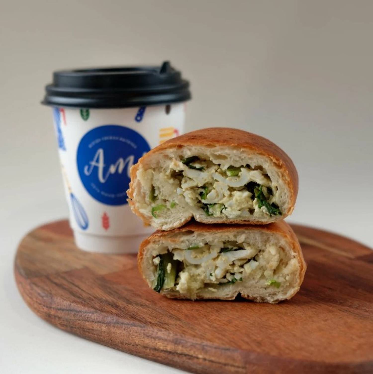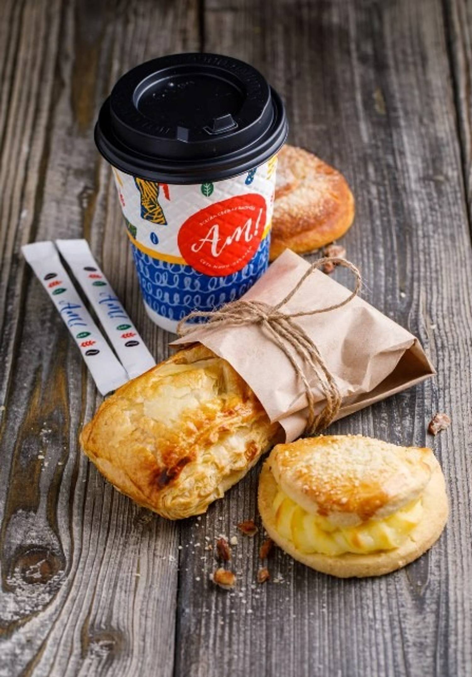 Еда и напитки. В меню кофейные напитки: эспрессо, американо, капучино, латте — без сиропов и декора. Также готовят выпечку из слоеного теста: слойка дуэт с сосисками, круассан с малиной и заварным кремом, яблочный треугольник, калитка с картофелем. На обед заказывают онигири с лососем, сырный суп, боул с лососем, пасту с куриной грудкой и грибами.