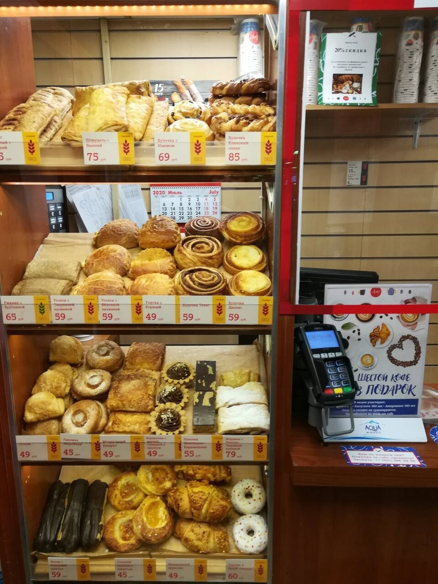 Еда и напитки. В меню базовые кофейные напитки: эспрессо, американо, капучино, латте. Каждый день готовят выпечку: от слойки с мясом и сосисками до турнеля с малиной и творожным кремом и косички кленовый пекан. Также есть обеды: оливье с копченой курой, боул с лососем, рис с курицей том ям и ежики в томатном соусе.