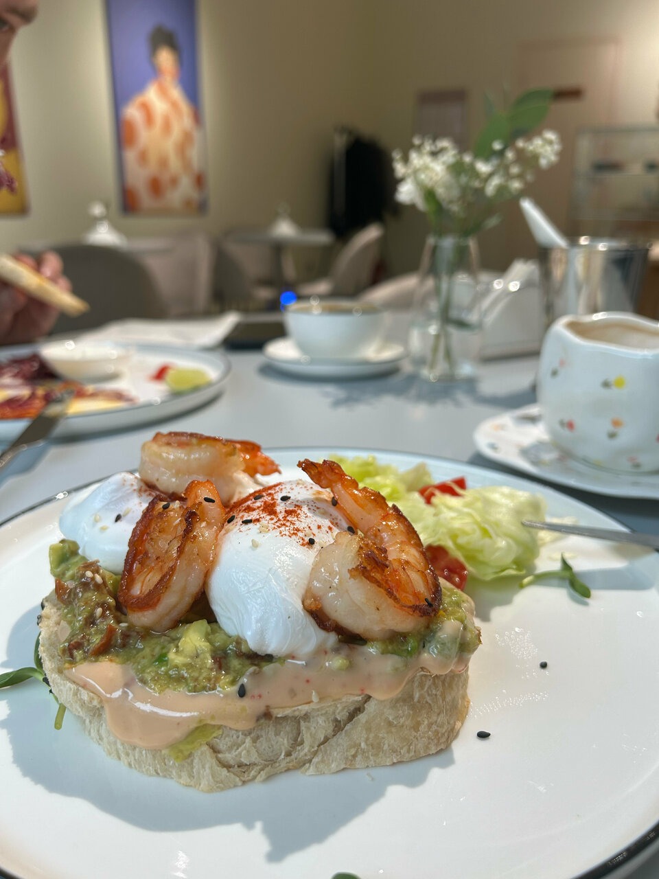 Еда и напитки. В меню — классика: эспрессо, капучино, латте, флэт уайт и раф. К напиткам предлагают комбо-завтраки: с томленой говядиной, лососем, на тосте с креветками, а из поздних вариантов есть с сочной курочкой и салатом, пюре с трюфелем, грибами и говядиной.
