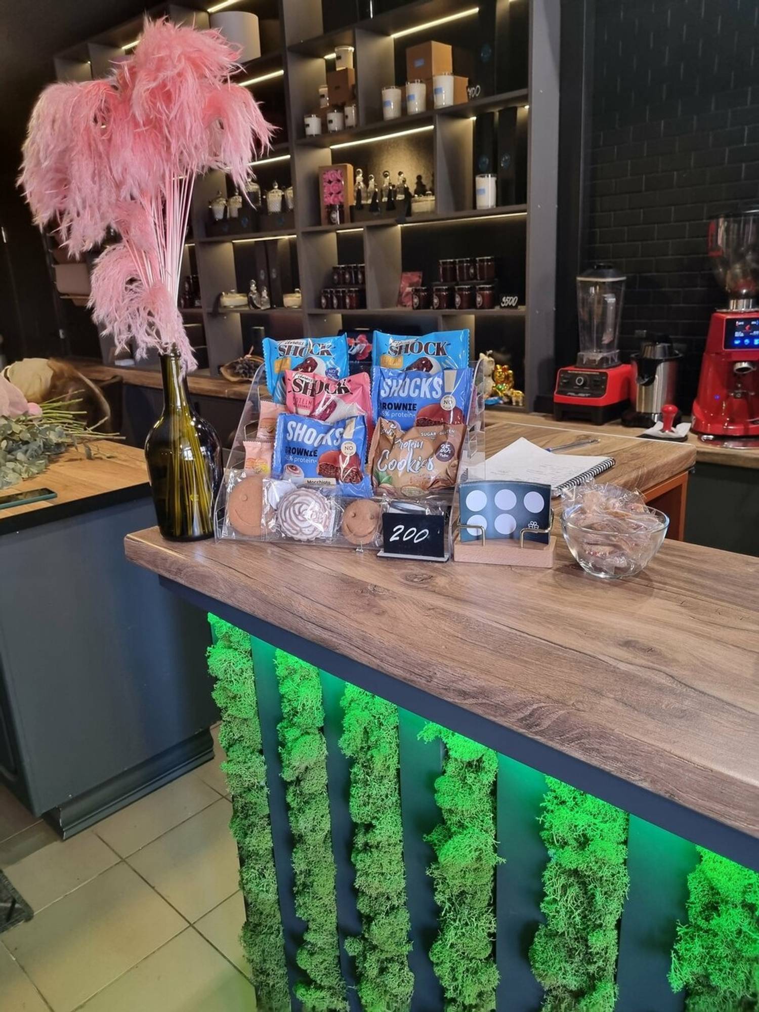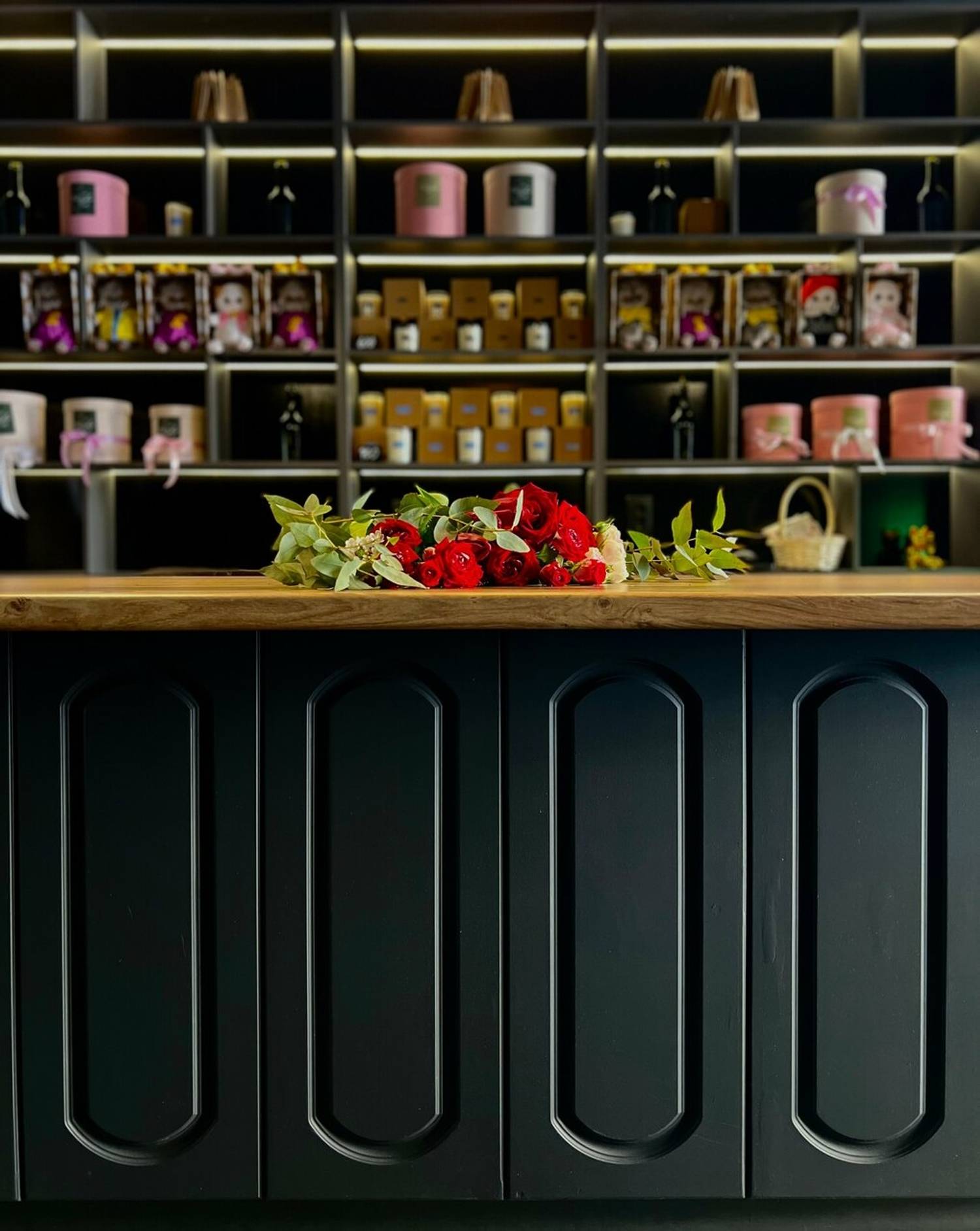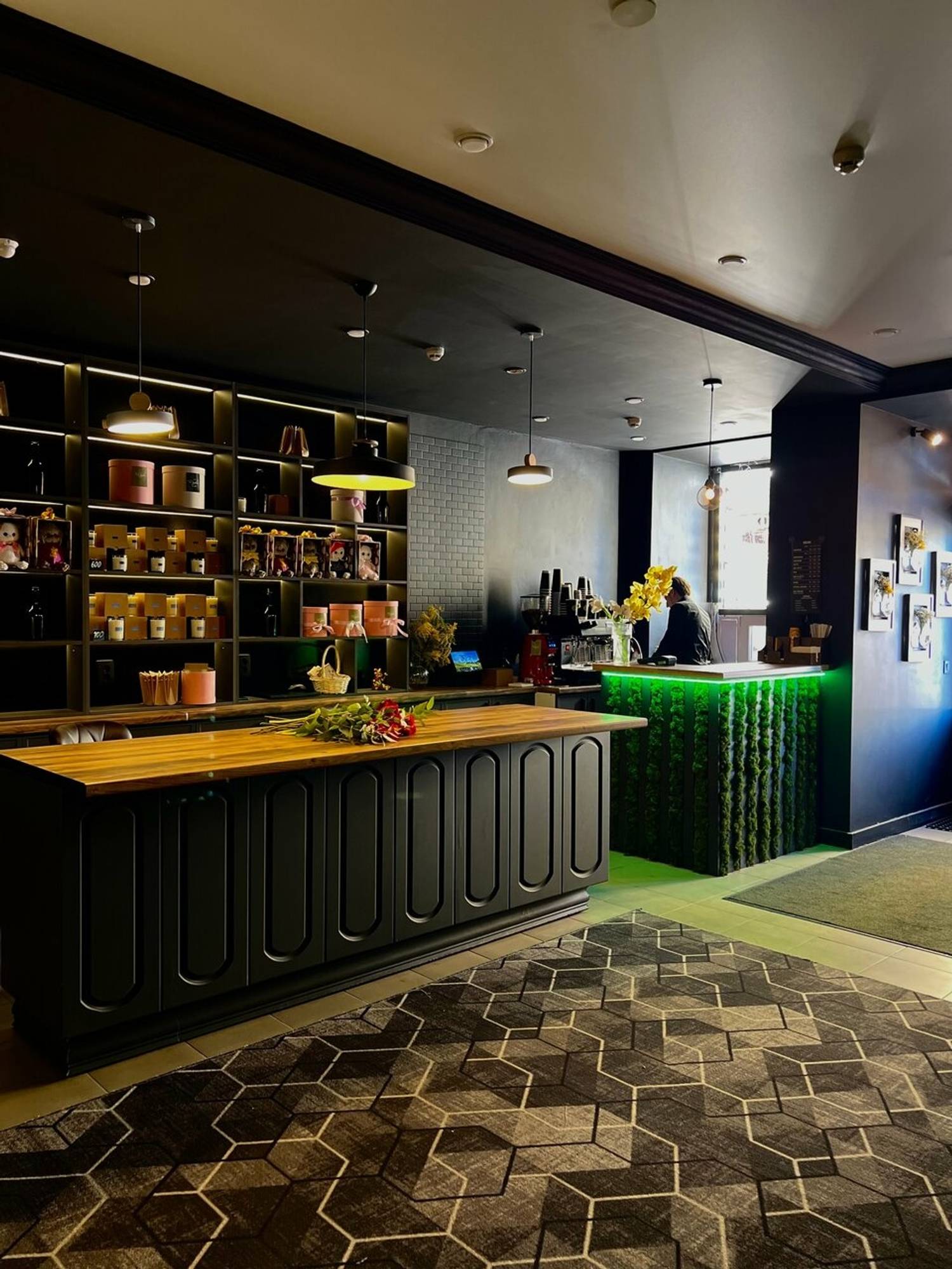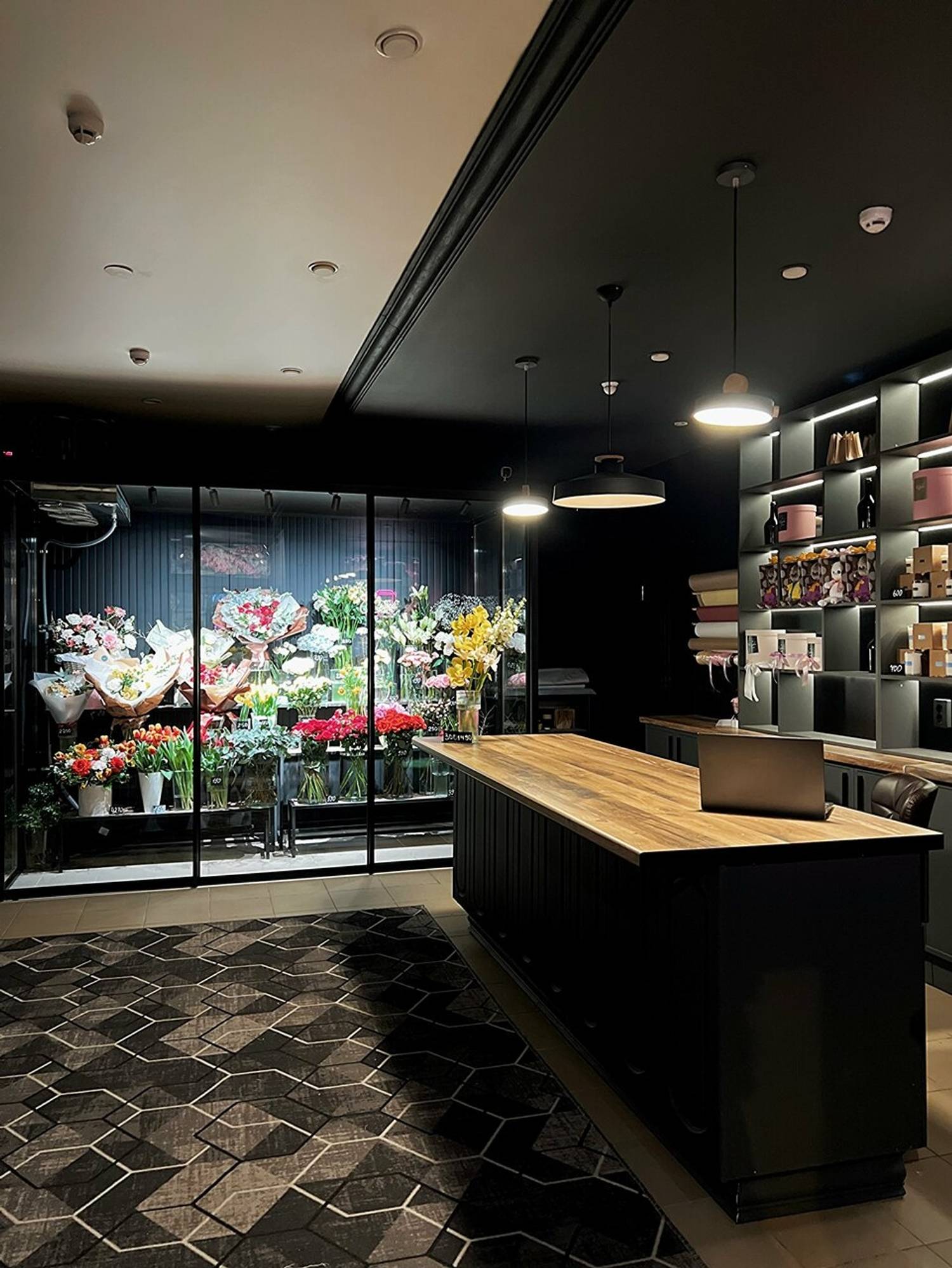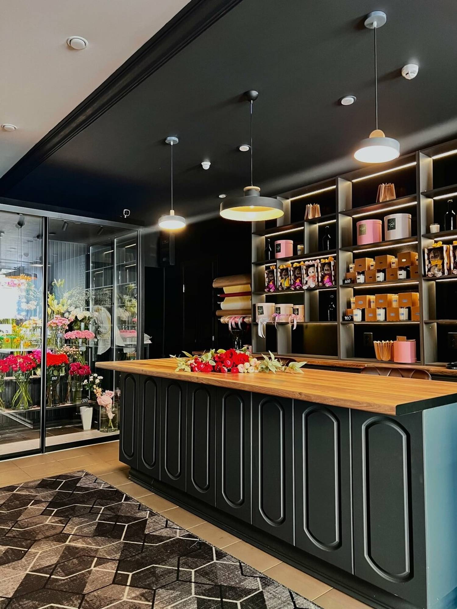 Атмосфера. Пространство сочетает эстетику цветочного бутика с функциональностью современной кофейни: здесь есть стеллажи с экзотическими растениями, стеклянные холодильники с букетами и зона для приготовления кофе. На фоне темных стен и ярких цветов получаются отличные фотографии букетов, которые отлично выглядят в соцсетях.