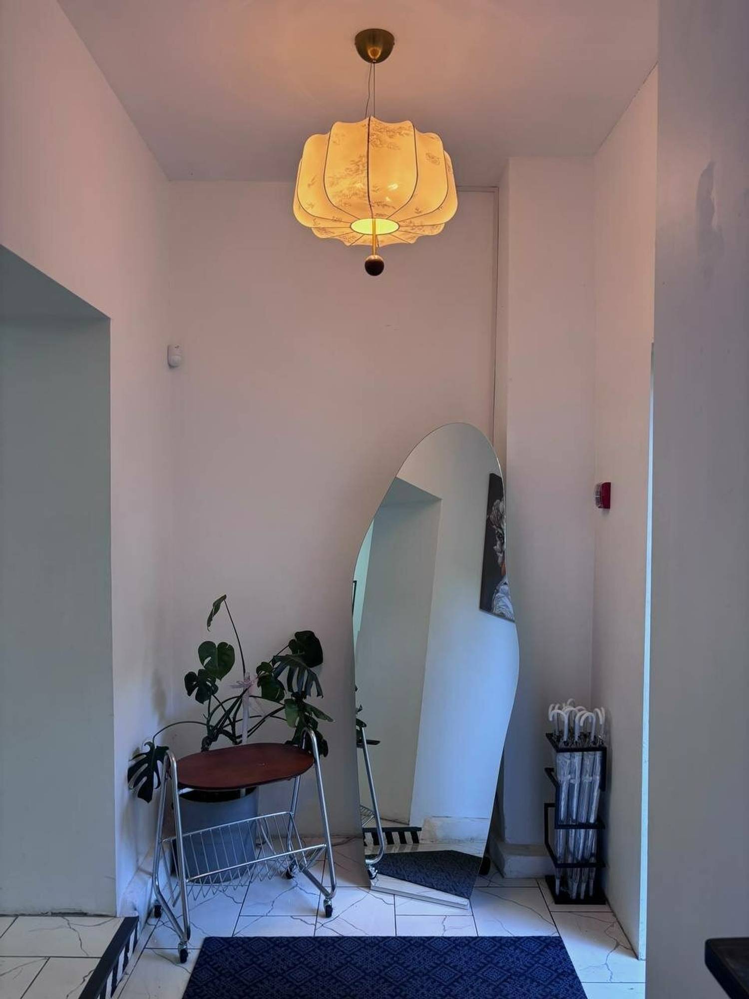 Атмосфера. Светлый интерьер наполнен воздушной эстетикой. Его украшают изящные синие люстры из лепестков, словно сошедшие со страниц сказки, цветы в вазах и три картины с женщинами, чьи прически напоминают белые крылья.