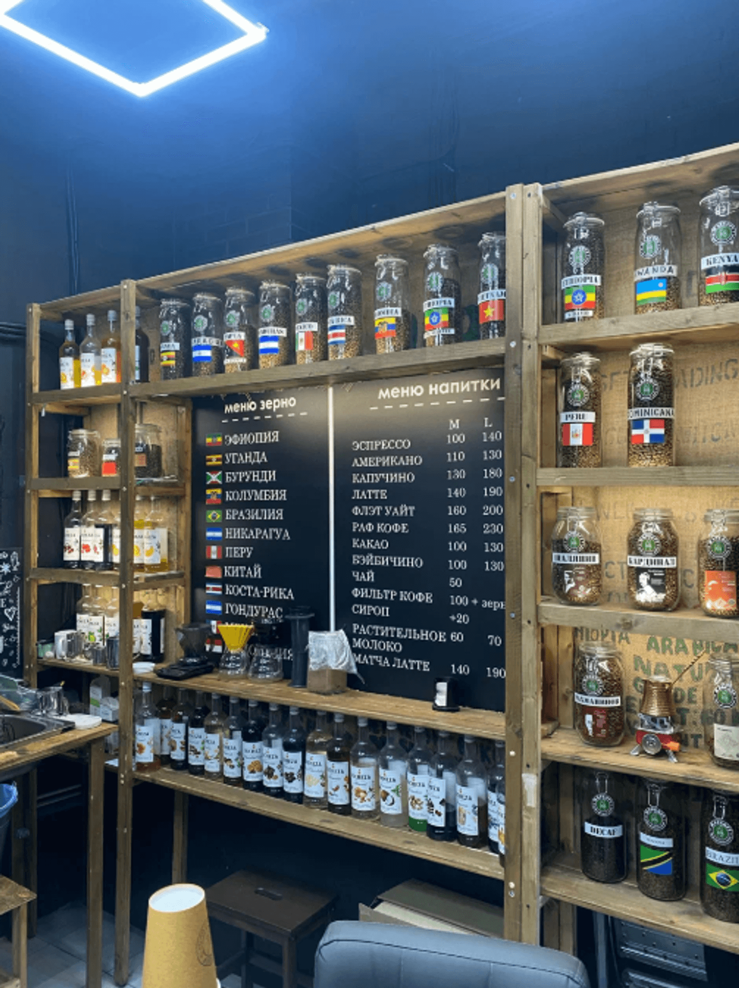 Еда и напитки. В основе — зерно собственной обжарки: моносорта с фруктовыми нотами и сбалансированные купажи. Помимо классических напитков здесь готовят сезонные спешлы и десерты: мороженое с карамелизированным кешью, ягодные смузи и молочные коктейли. Зерна доступны для покупки на развес.