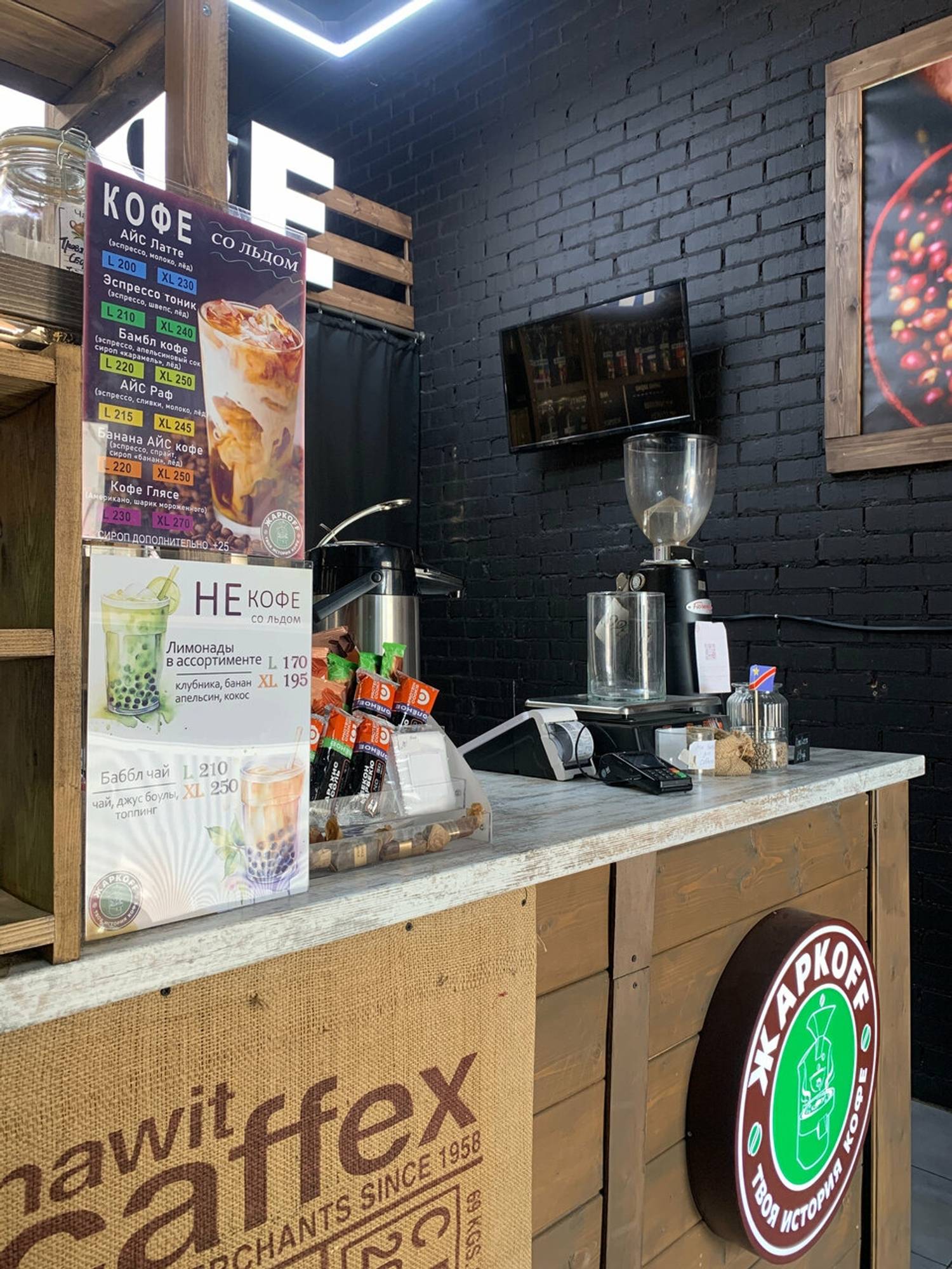 «Кофе Жаркофф» по адресу Суздальское шоссе, 22к2 — это кофейня полного цикла с собственной обжаркой и авторскими напитками.