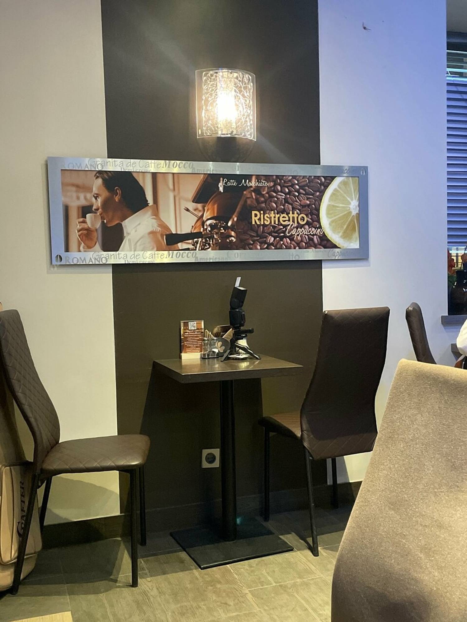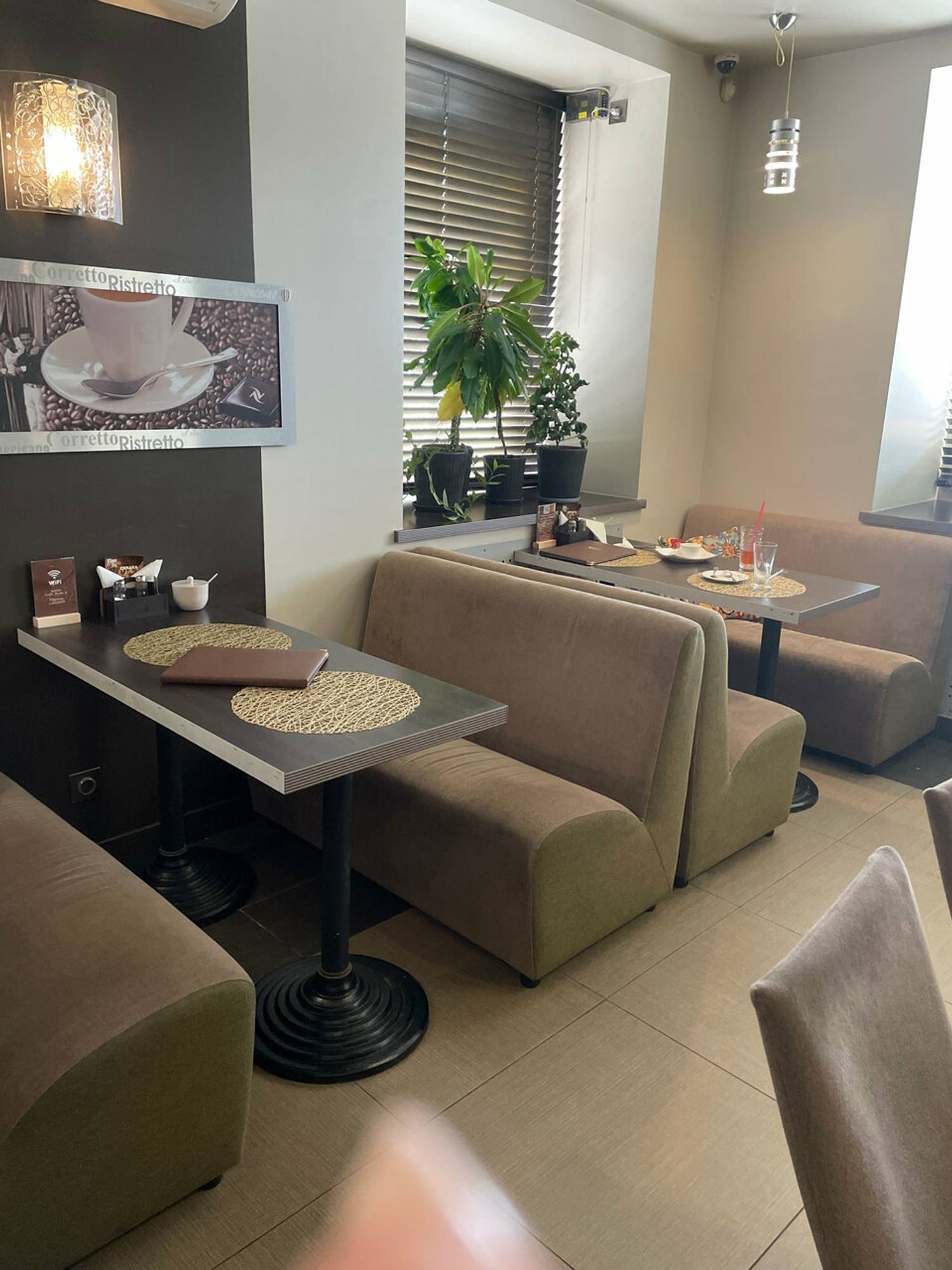 Еда и напитки. В меню — акцент на кофейной карте и десертах: от классического эспрессо и авторских напитков на основе альтернативных методов заваривания до крем-брюле и ягодного лукошка. Кроме того, готовят сэндвич с курицей, жаркое из свинины в горшочке, рыбу под сырной шапкой с помидорами и котлету от шефа.