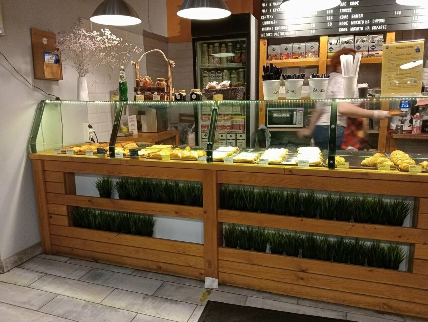 Еда и напитки. В меню — кофе: эспрессо, капучино, латте, американо, какао с маршмеллоу и горячий шоколад. Также здесь выпекают круассан с вареной сгущенкой, штрудель груша-творог, подкова с кремом банан, сосиска в тесте и пирог с ветчиной и сыром. Из основных блюд готовят сырный крем-суп, минтай в кляре, гуляш из индейки с гречей.