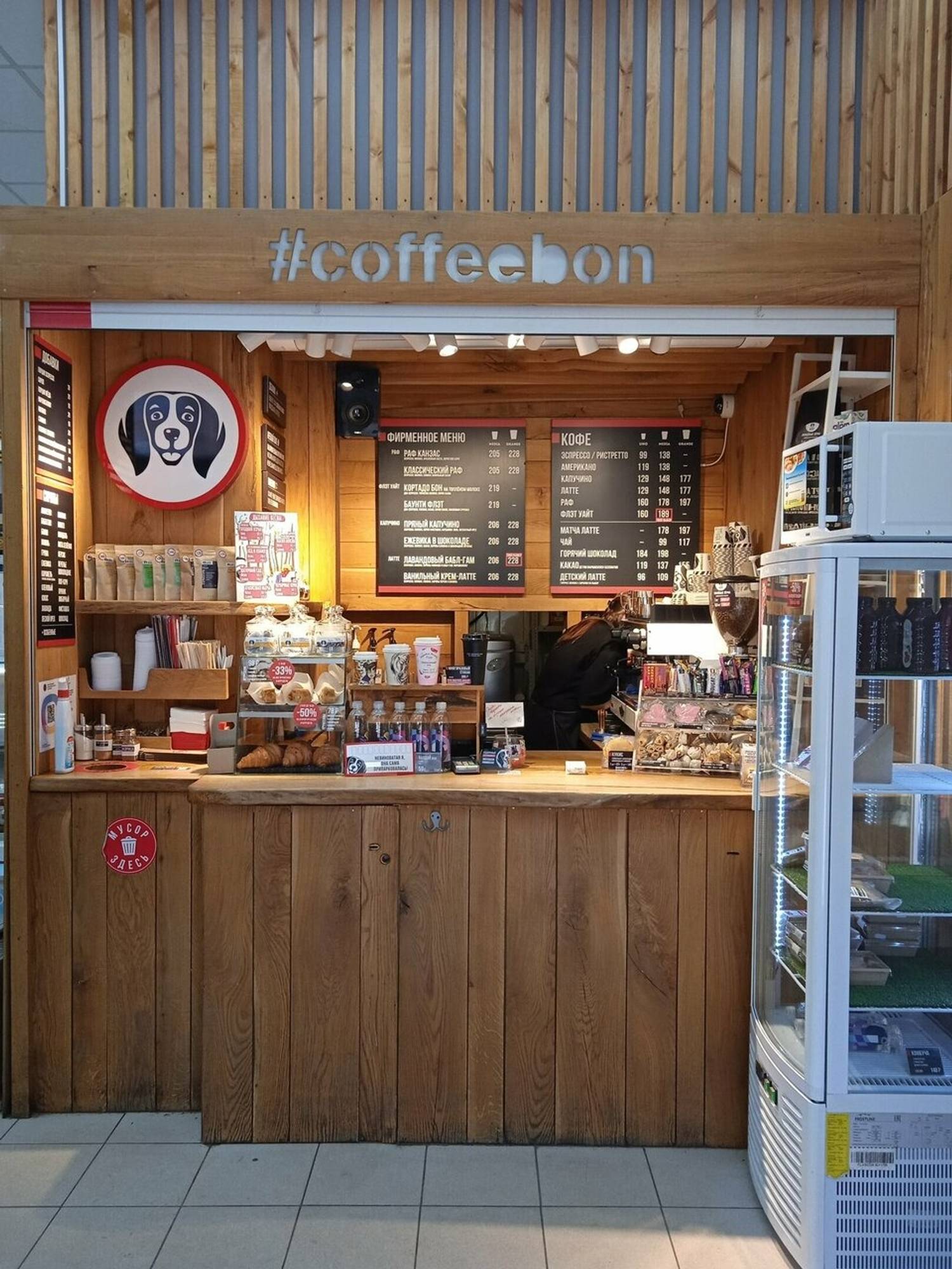 Еда и напитки. Меню сохраняет единство с другими точками сети, предлагая гостям проверенный набор блюд и напитков. Здесь можно заказать как знакомые кофейные напитки, включая ванильный крем-латте или капучино Баунти, так и сытные варианты вроде сэндвича Филадельфия или горячего блюда. В ассортименте также представлены десерты, например, чизкейк или сырники, что позволяет завершить прием пищи сладким акцентом.