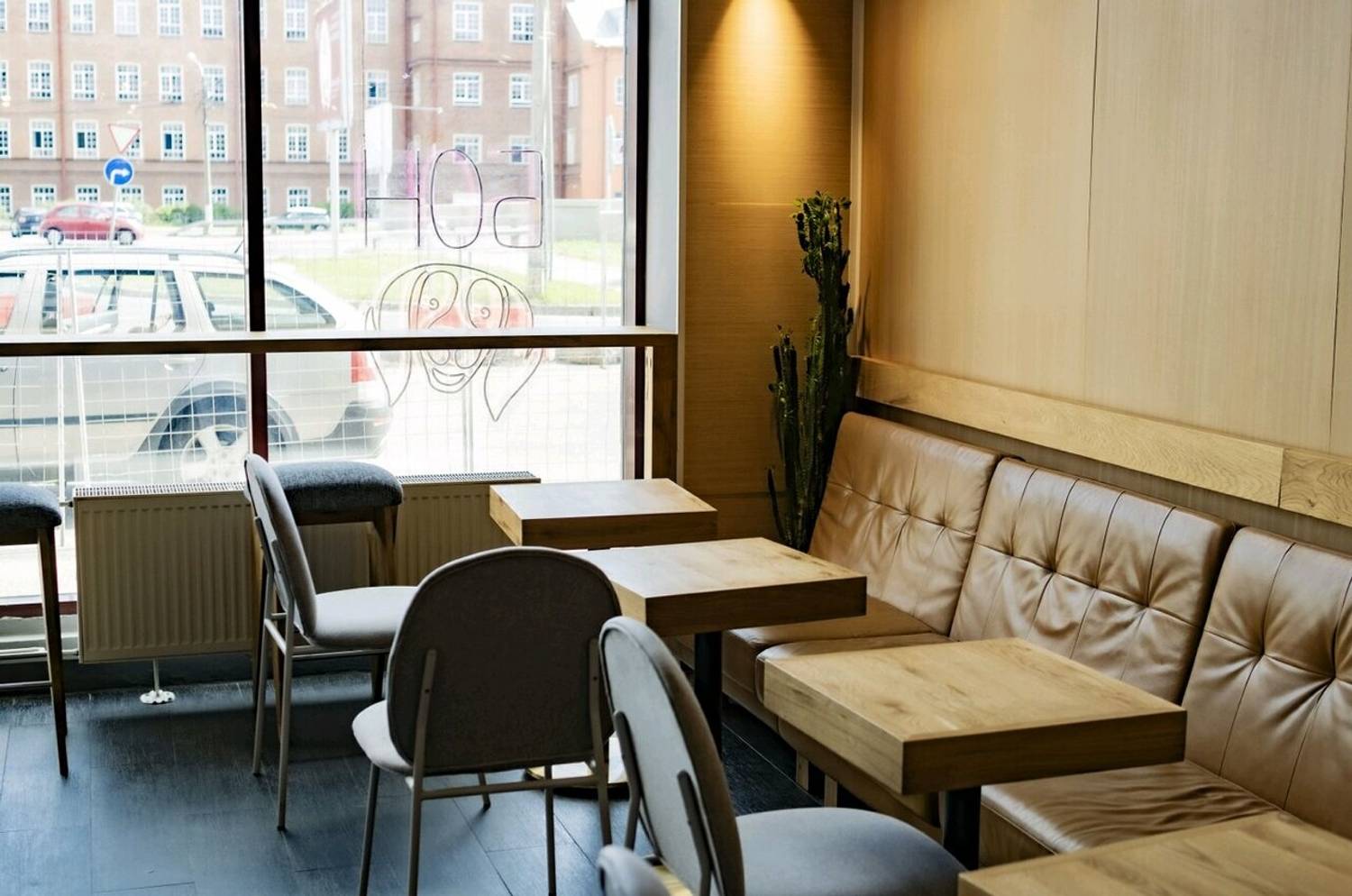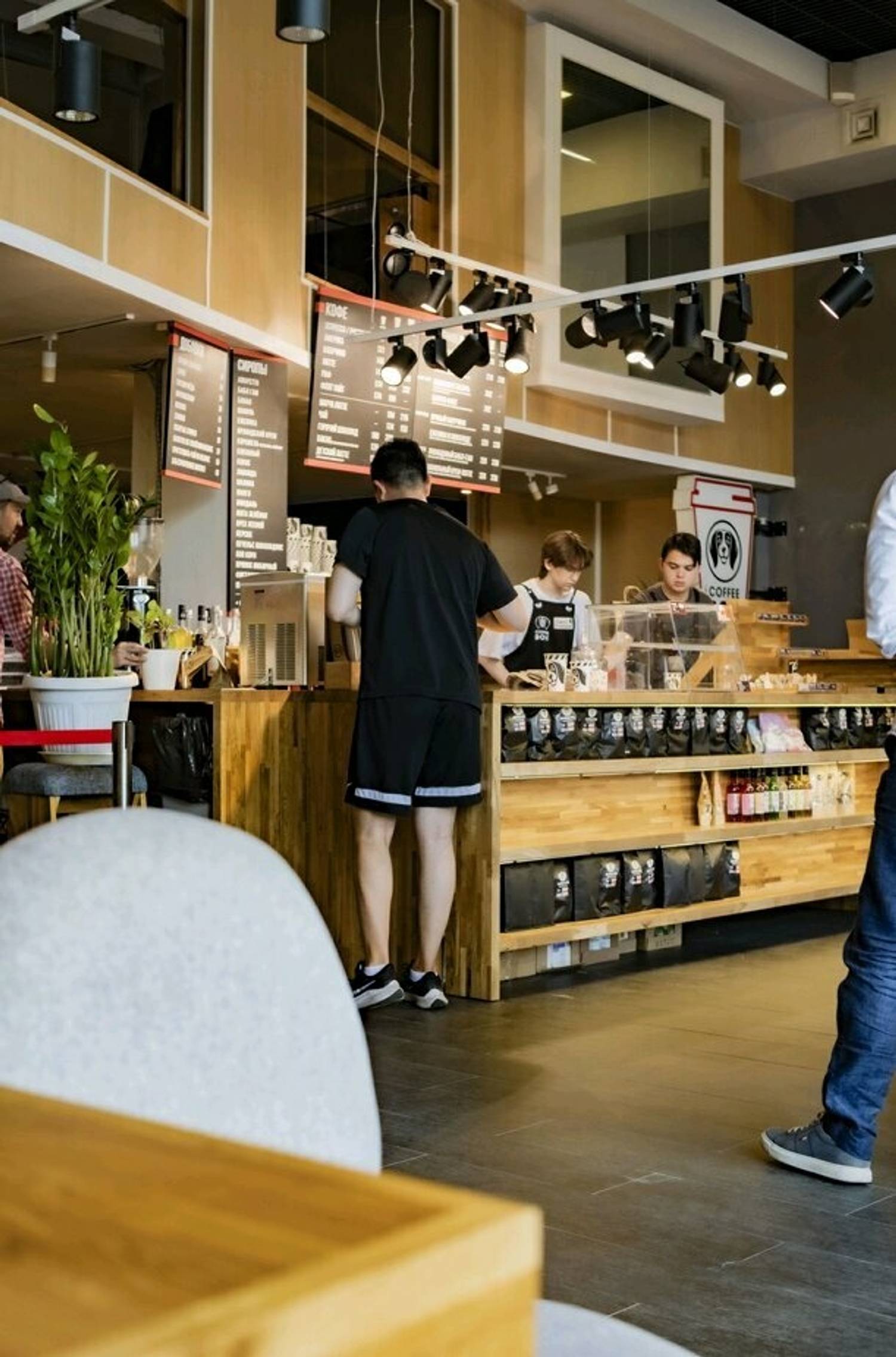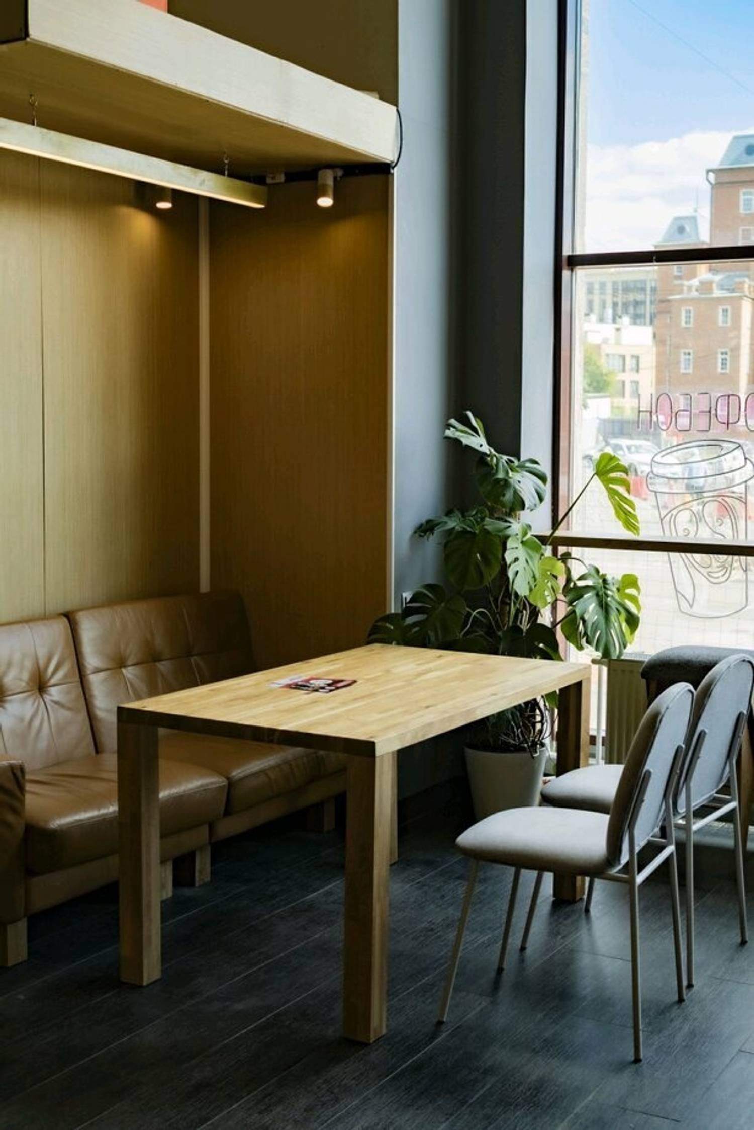 Атмосфера. В кофейне царит спокойная и непринужденная обстановка, контрастирующая с динамикой окружающих улиц. Интерьер в теплых тонах с деревянной мебелью и стильными кожаными диванами создает ощущение домашнего тепла и уюта. Это пространство подходит как для короткой встречи, так и для того, чтобы уединенно поработать за ноутбуком или почитать книгу за чашкой кофе.