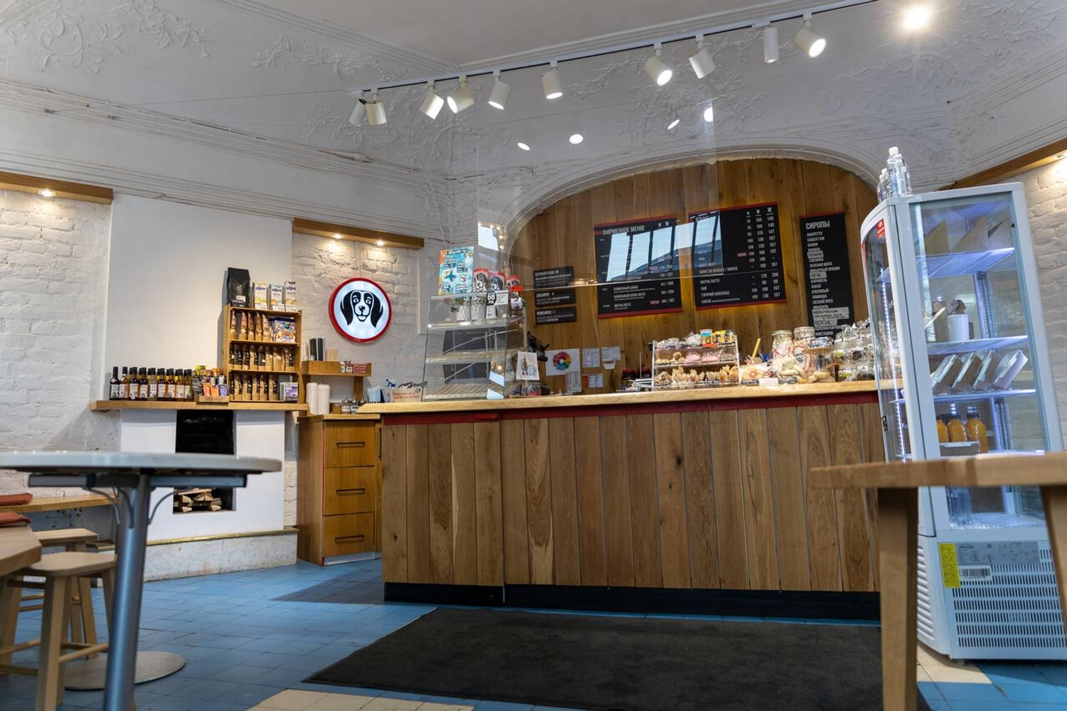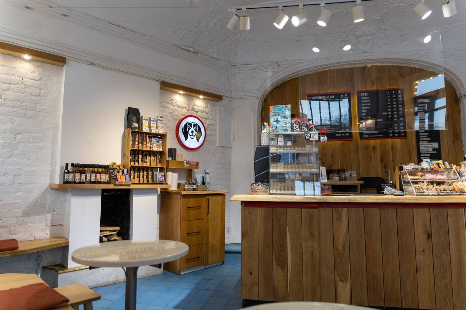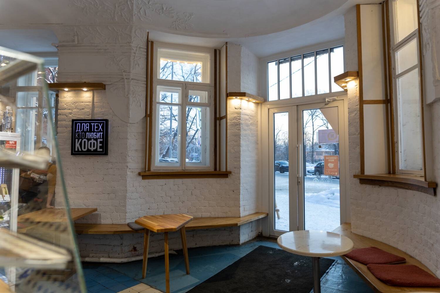 Атмосфера. Кофейня создает ощущение тихого и камерного места, куда приятно зайти, чтобы отдохнуть от городской среды. Интерьер выполнен в светлых, натуральных тонах с деревянными столами и росписями на стенах. Ненавязчивая музыка и мягкий свет формируют идеальную обстановку для неспешной беседы, чтения или созерцания происходящего снаружи.