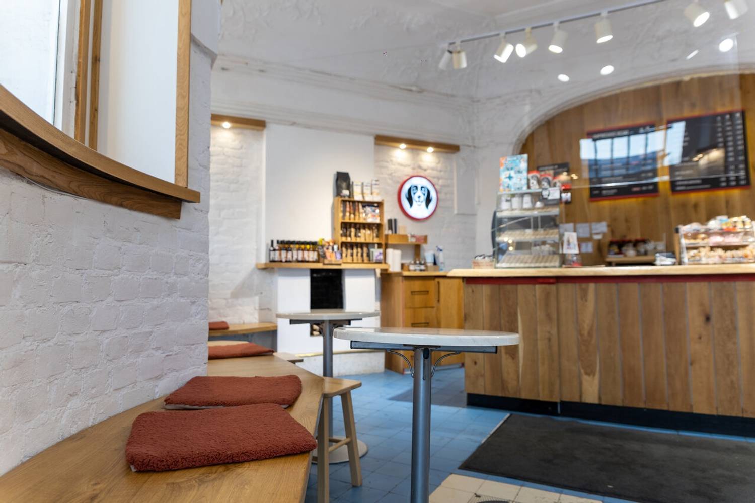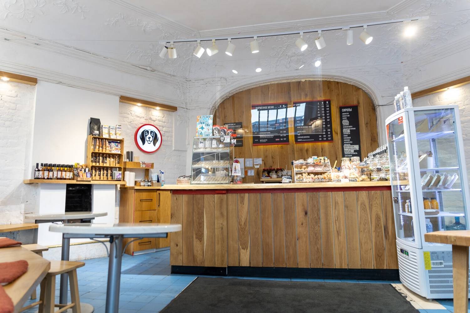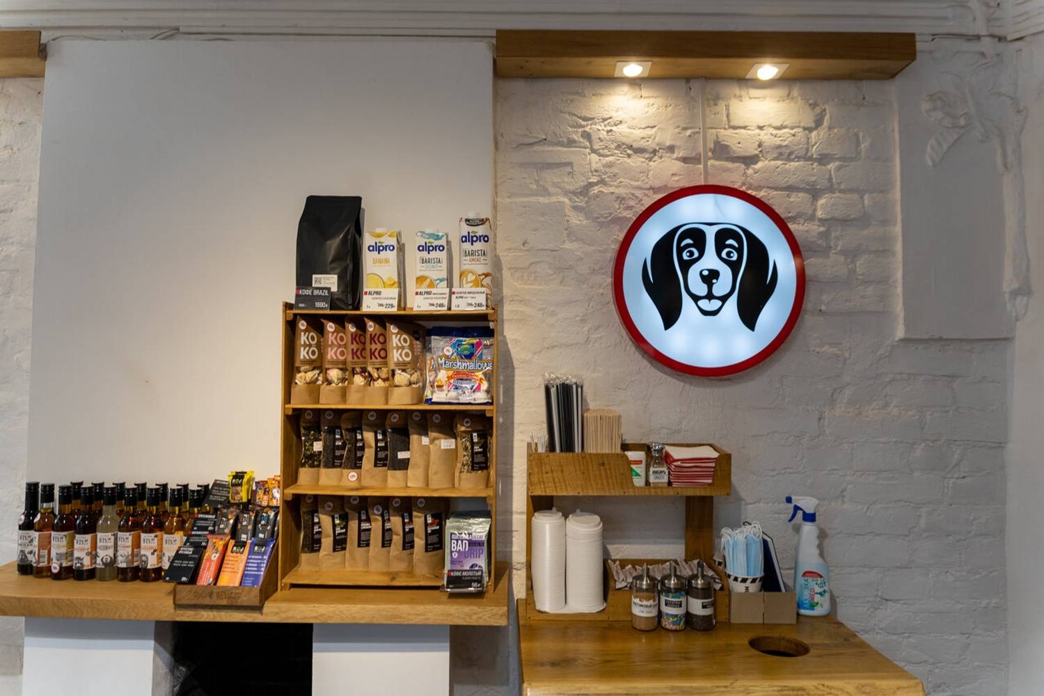 Атмосфера. Кофейня создает ощущение тихого и камерного места, куда приятно зайти, чтобы отдохнуть от городской среды. Интерьер выполнен в светлых, натуральных тонах с деревянными столами и росписями на стенах. Ненавязчивая музыка и мягкий свет формируют идеальную обстановку для неспешной беседы, чтения или созерцания происходящего снаружи.