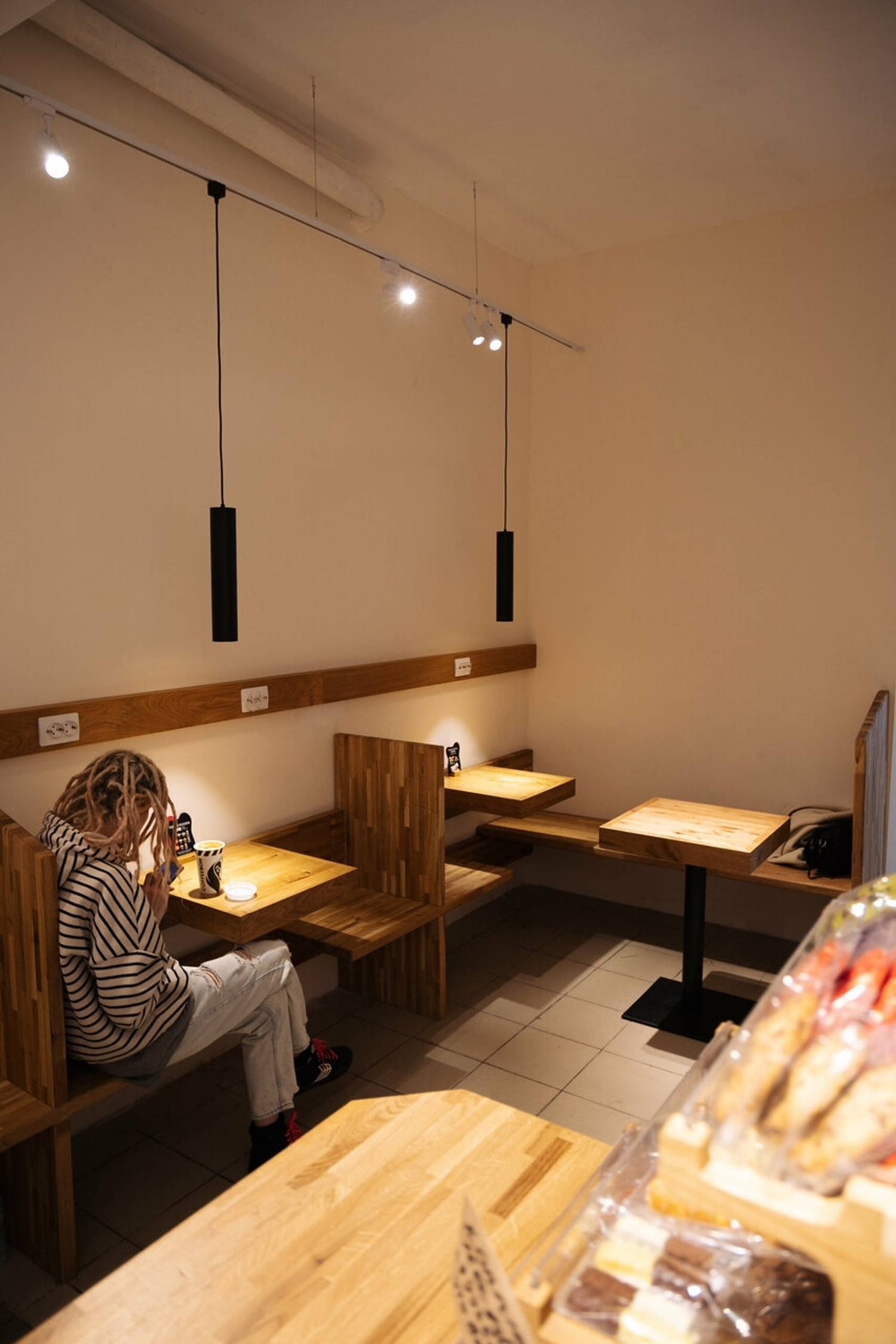 Атмосфера. В кофейне царит непринужденная обстановка, располагающая к неспешному времяпрепровождению. Интерьер с теплым светом, деревянными столами и уютными посадочными уголками формирует комфортную среду, где можно поработать, пообщаться или просто расслабиться. Это место стало популярным среди местных жителей и тех, кто работает неподалеку.