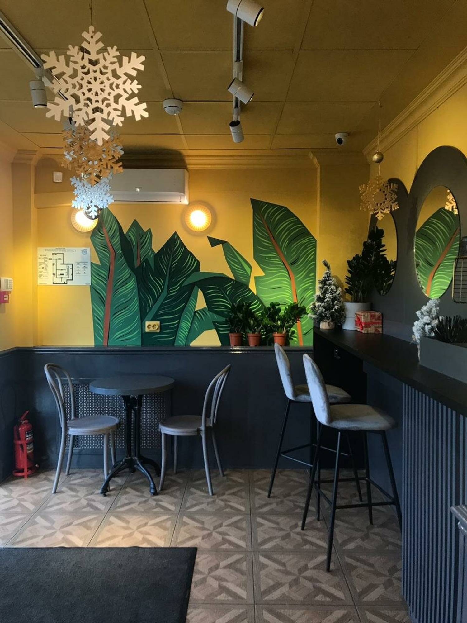 Атмосфера. Это место создает настроение спокойного домашнего уюта вдали от центральной суеты. Яркие желтые стены и стильный интерьер внутри настраивают на позитивный лад. Небольшой зал с практичной мебелью идеален для того, чтобы выпить кофе после прогулки с ребенком или встретиться с подругой. Это именно тот формат, где ценят постоянных гостей и создают для них комфортную среду.