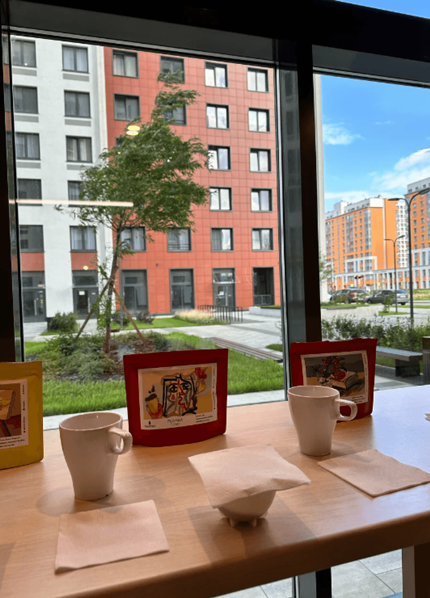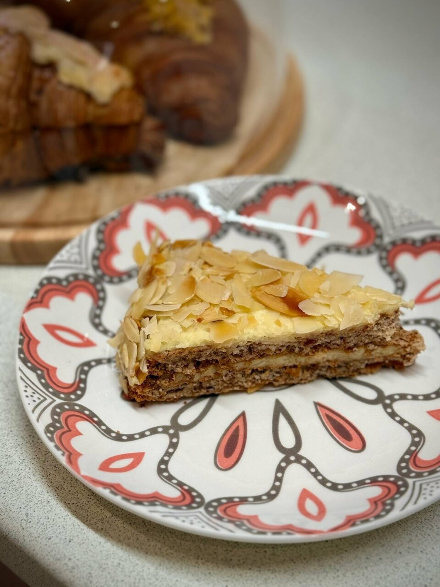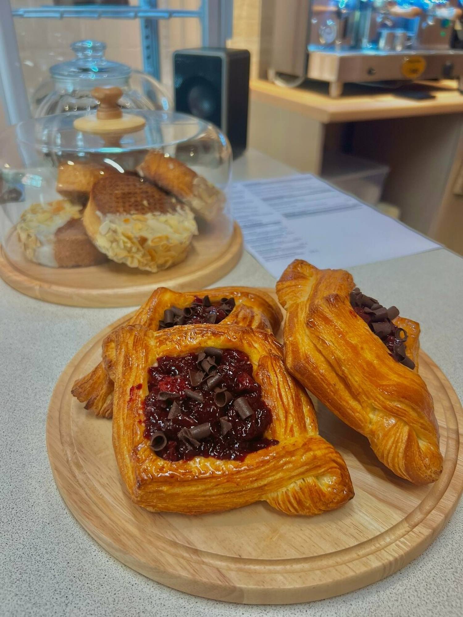 Еда и напитки. В меню классические и авторские кофейные напитки: эспрессо, капучино, раф, фильтр, а также сезонные предложения. Есть безлактозное и альтернативное молоко. К кофе подают свежую выпечку и десерты, например, муссовое пирожное и круассан с творожным кремом.