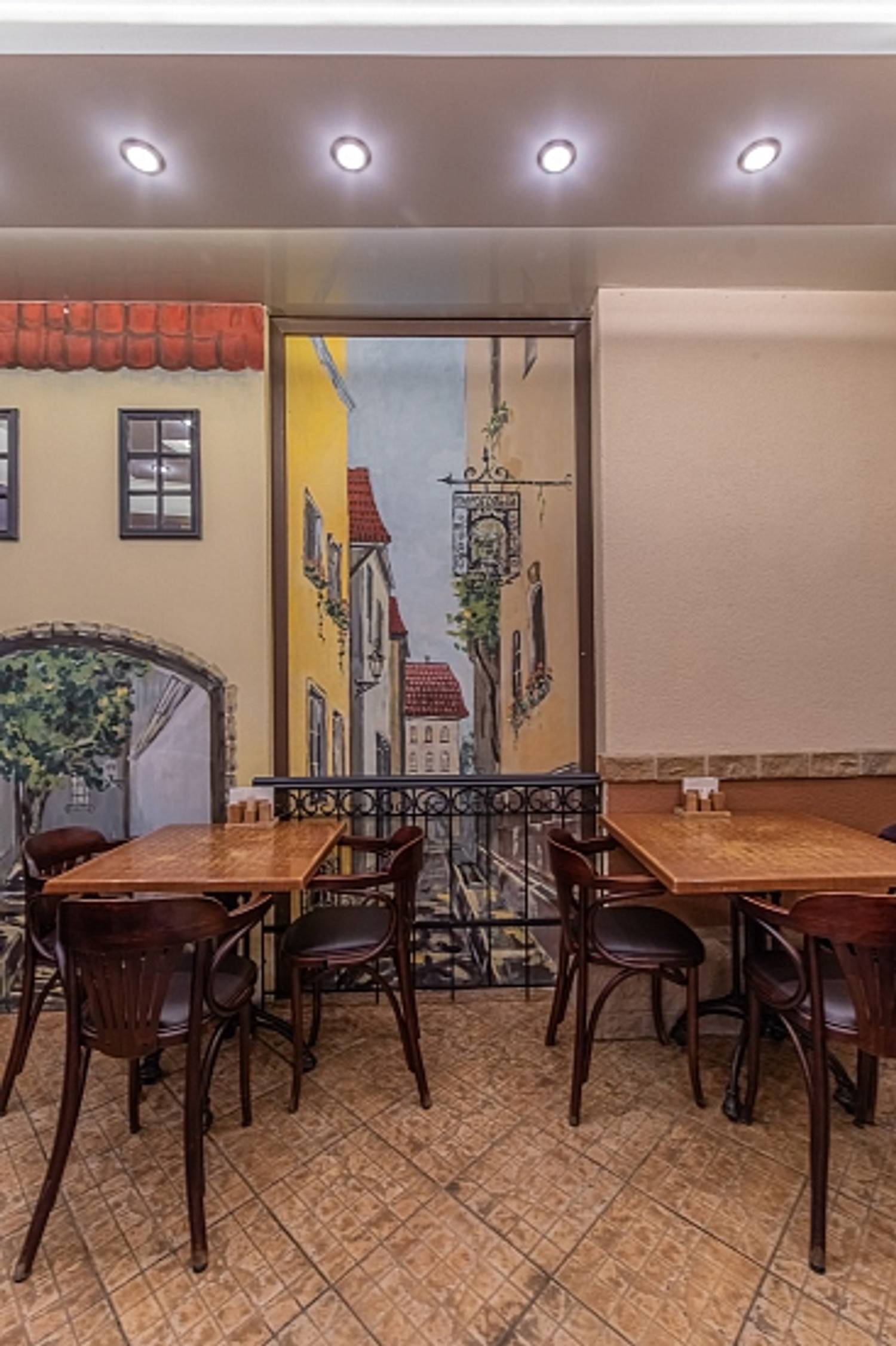 Атмосфера. Терракотовые стены, фрески в европейском стиле и декоративная черепица создают ощущение старинного заведения где-то в европейском городке. Светильники-фонари и кирпичная отделка дополняют образ уютного семейного ресторана, в котором вам всегда рады и готовы сытно накормить.