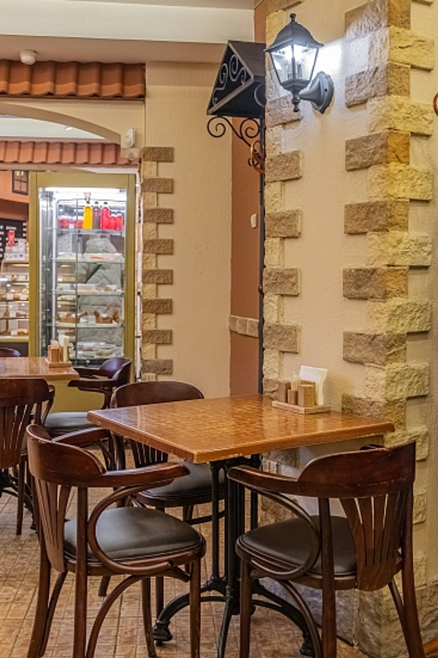 «Пироговый дворик» по адресу Гражданский пр., 116/5 — просторная пекарня с европейской атмосферой.
