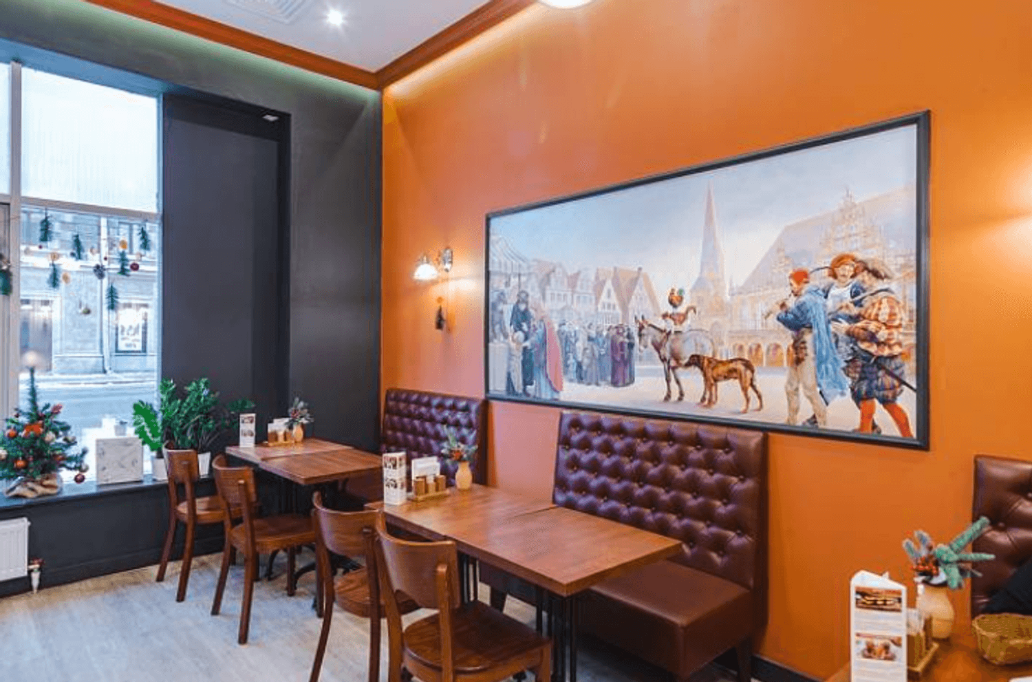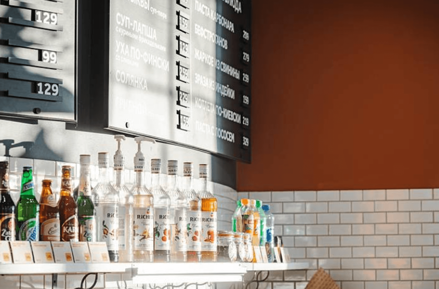 Еда и напитки. Здесь удобно заказывать блюда для быстрого перекуса: пирог с рисом и яйцом, картофельные зразы с галетой, а на десерт — тирольский пирог с грушей или эклеры. Кофе можно выпить за столиком или взять с собой.