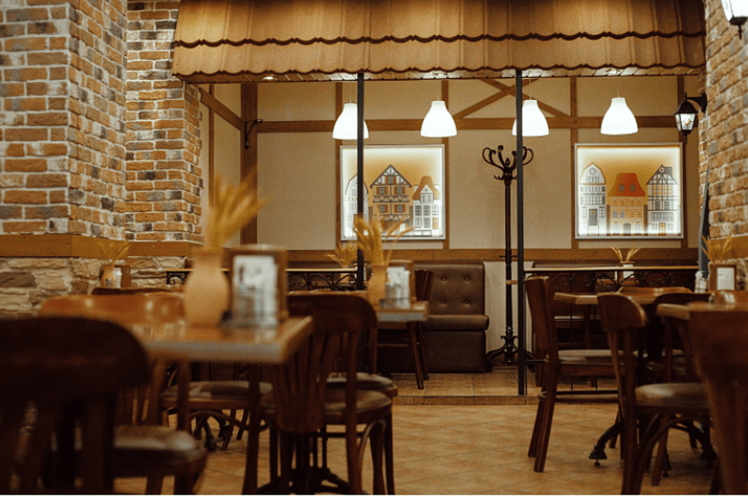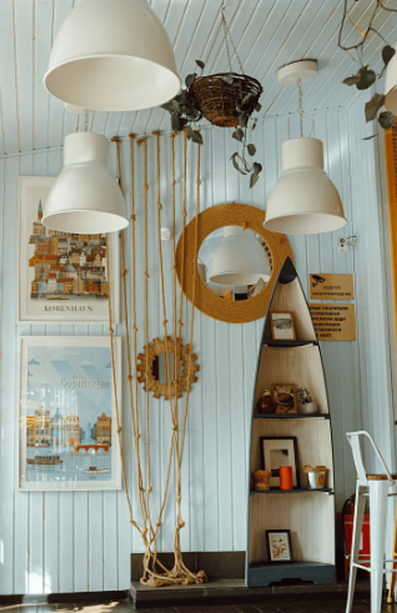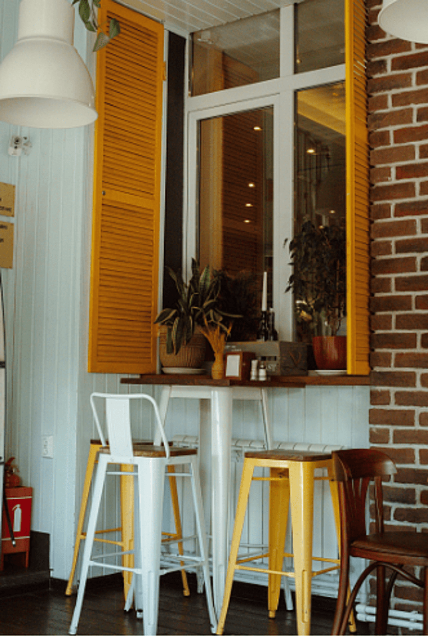 Атмосфера. Пространство сохраняет фирменный стиль: кофейные диваны, терракотового цвета стены и декоративные балки. Дополнено все яркими деталями — например, ярко-желтыми ставнями и стеллажом в форме лодки — которые добавляют интерьеру индивидуальности и средиземноморского настроения.