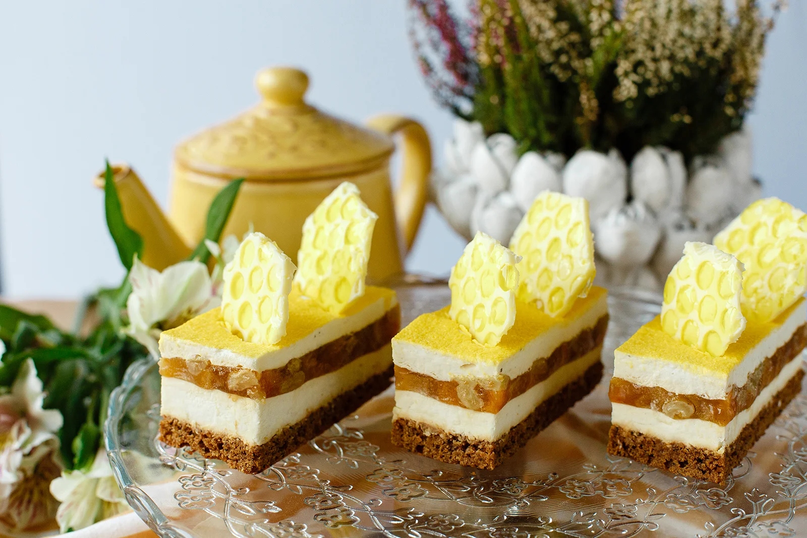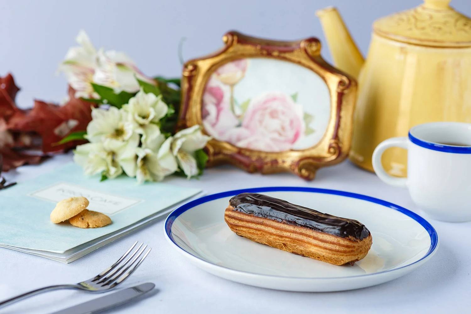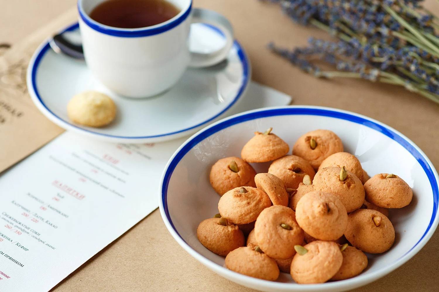 Еда и напитки. В ассортименте — фирменные десерты фабрики: многослойные торты с фруктовыми муссами, фигурные пирожные, пралине с золотым напылением и эксклюзивный зеленый шоколад из Дубая. Кофейная карта включает классические напитки, специально подобранные для идеального сочетания с кондитерскими изделиями.