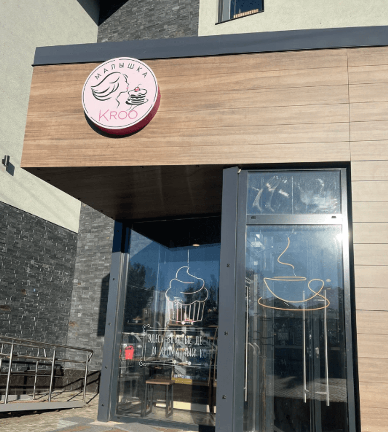 «Малышка KROO» по адресу Ленинградское ш., 25Б, д. Порошкино — кондитерское кафе от фабрики «KROOfabriqué» с тематическим дизайном.