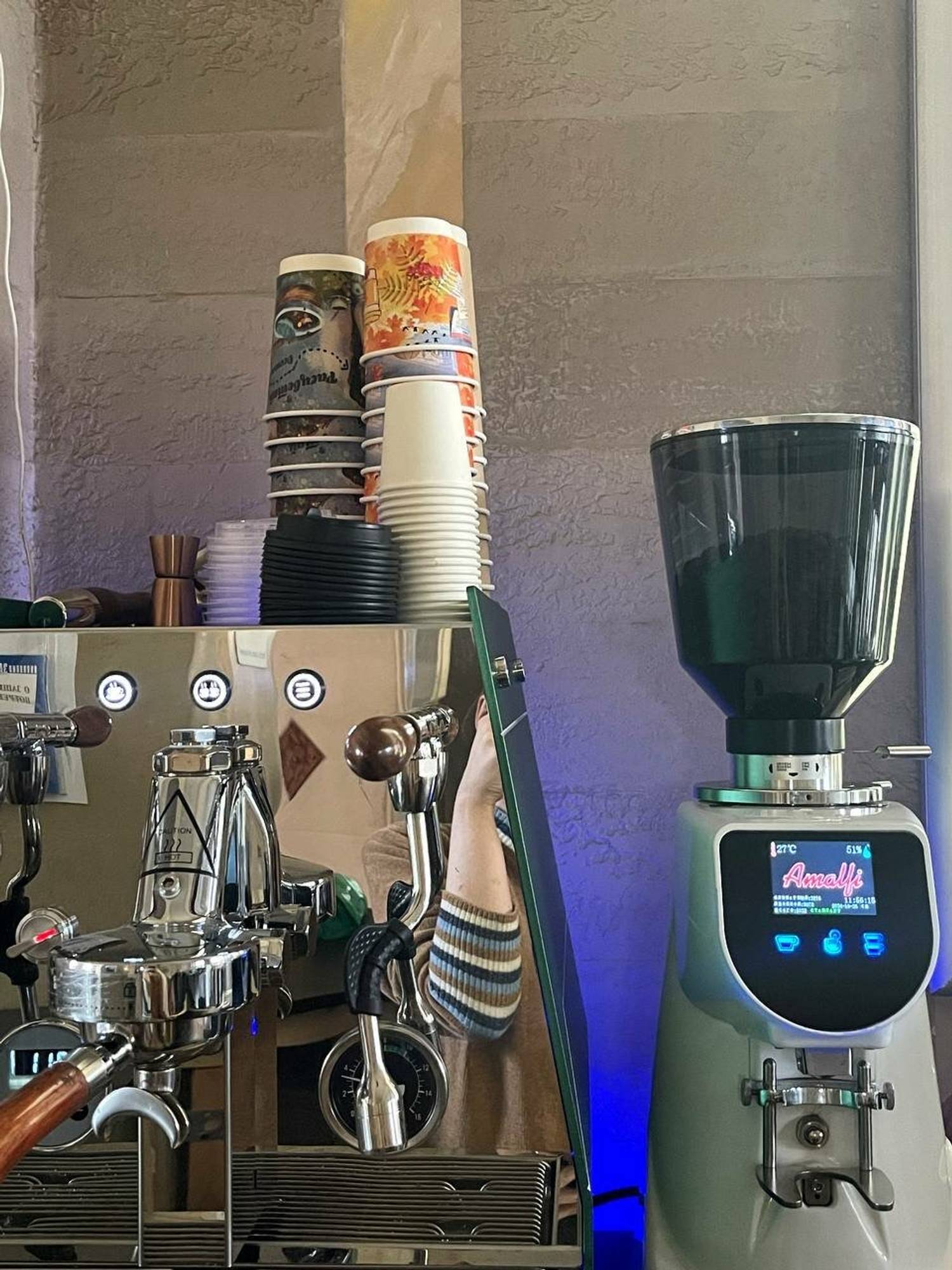 Еда и напитки. В меню — классические кофейные напитки: эспрессо, капучино, латте, а также авторские варианты вроде рафа или эспрессо-тоника. Завтраки доступны в течение всего дня: тосты, гранола, яичница и другие сытные блюда.