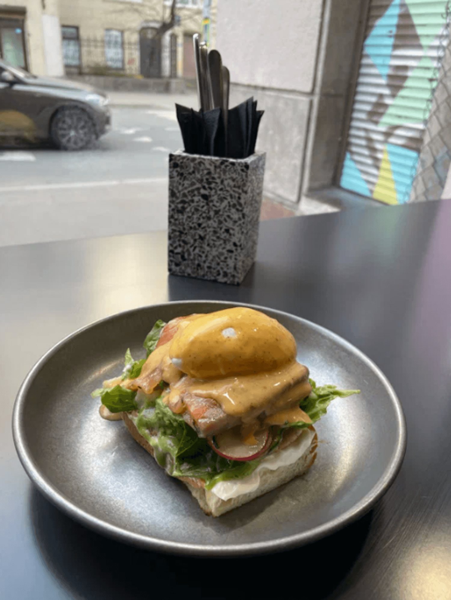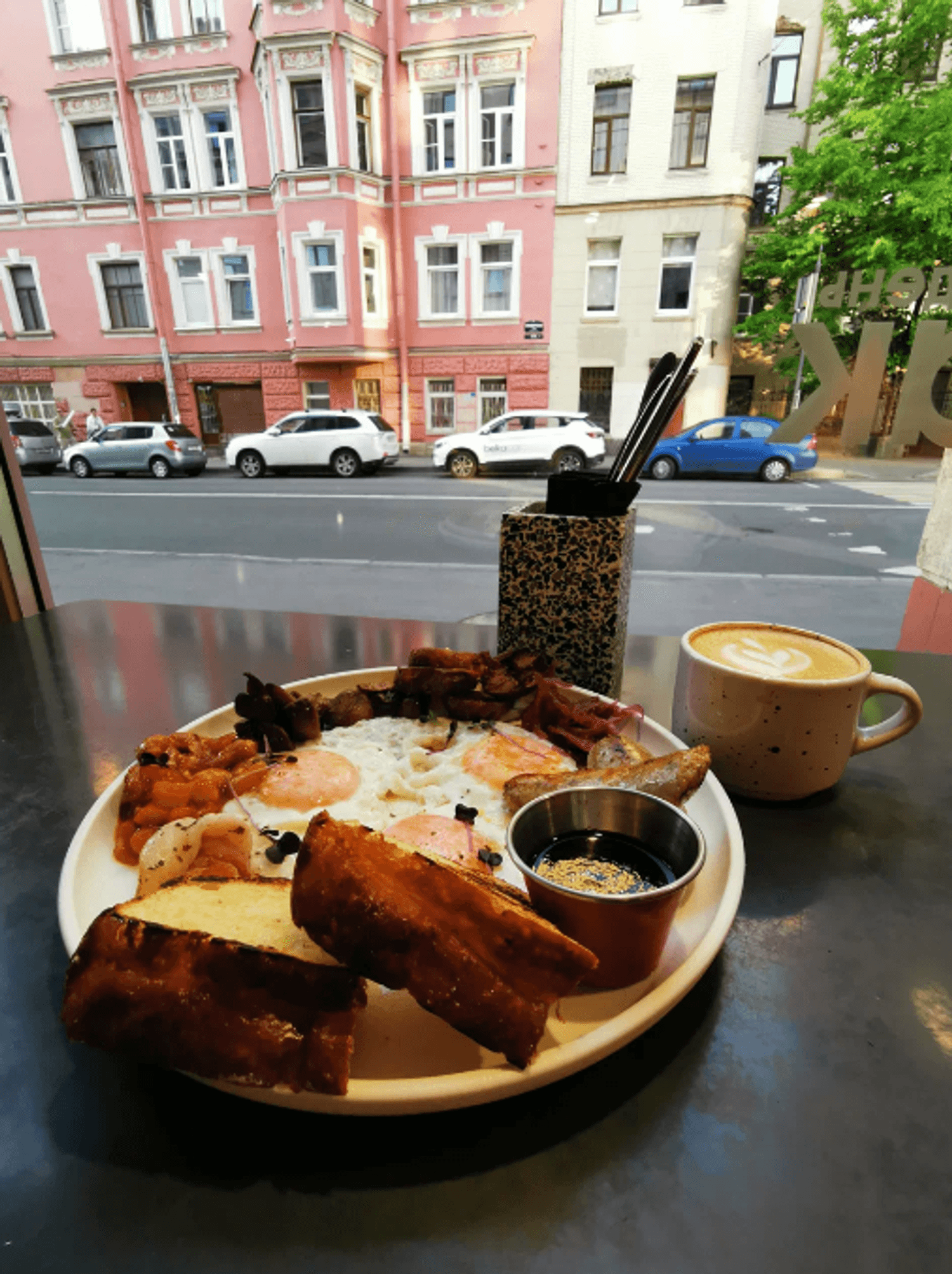Еда и напитки. Помимо классического эспрессо и фильтр-кофе здесь готовят и авторские напитки: какао с халвой, эспрессо-тоник и чай с куркумой. Среди блюд — тосты с авокадо и вяленым окороком, сэндвич с мортаделлой и печеной сливой, гриль-чиз с моцареллой, арабский цыпленок с сальсой из зеленых перцев и куриный суп за 3 доллара.