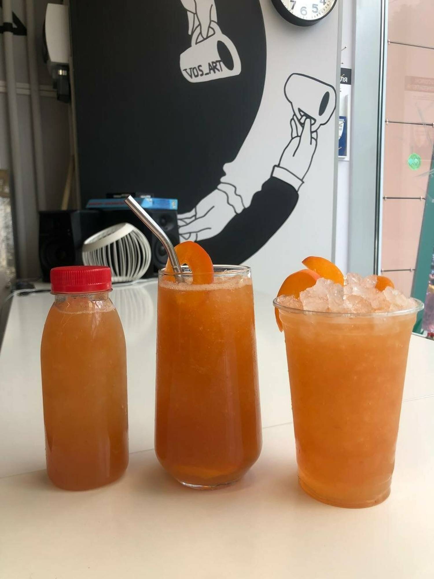 Еда и напитки. В меню — классические кофейные напитки: эспрессо, капучино, латте, в том числе на альтернативном молоке. Также готовят свежевыжатые соки, холодный кофе и милк-шейки.