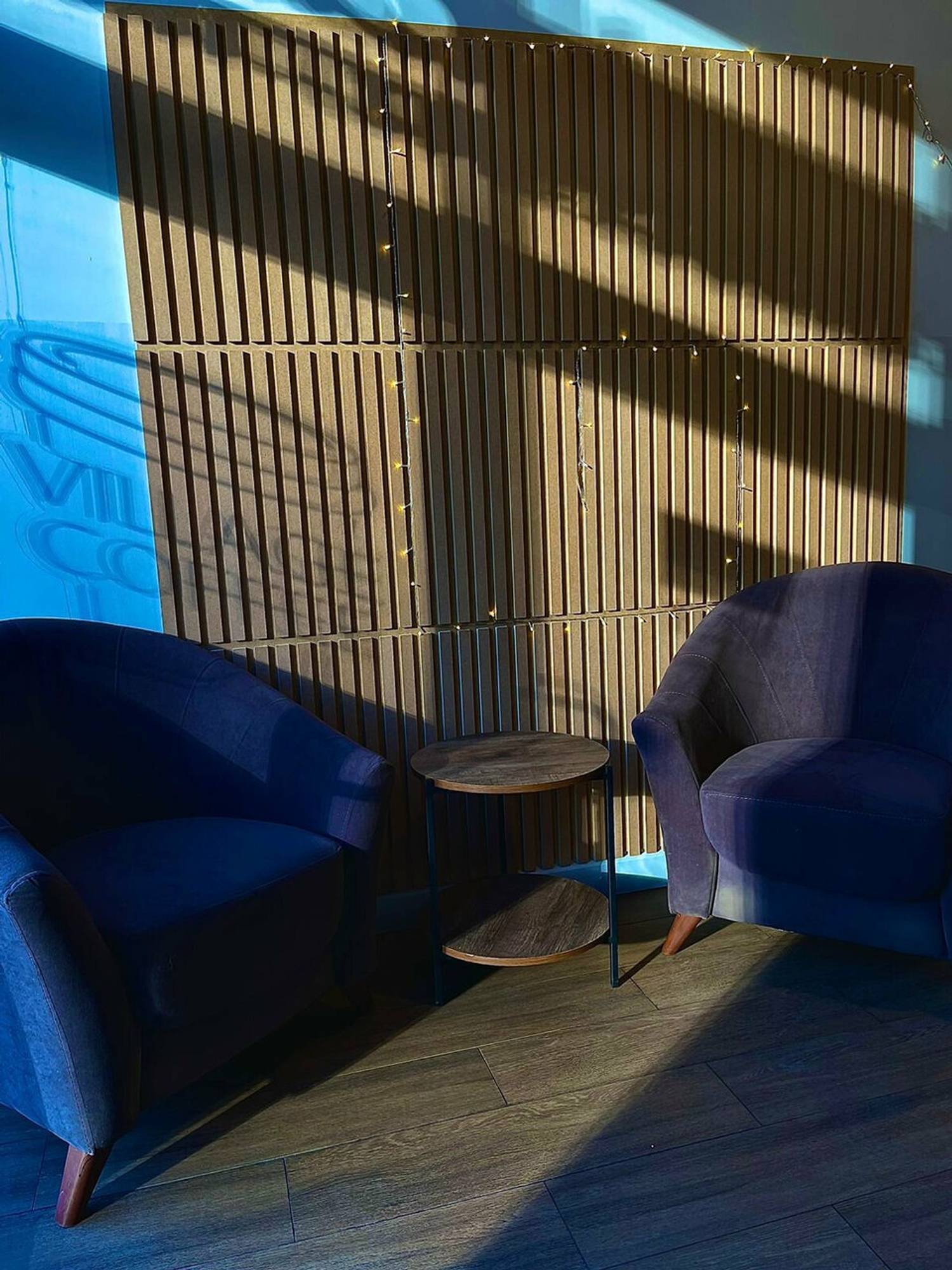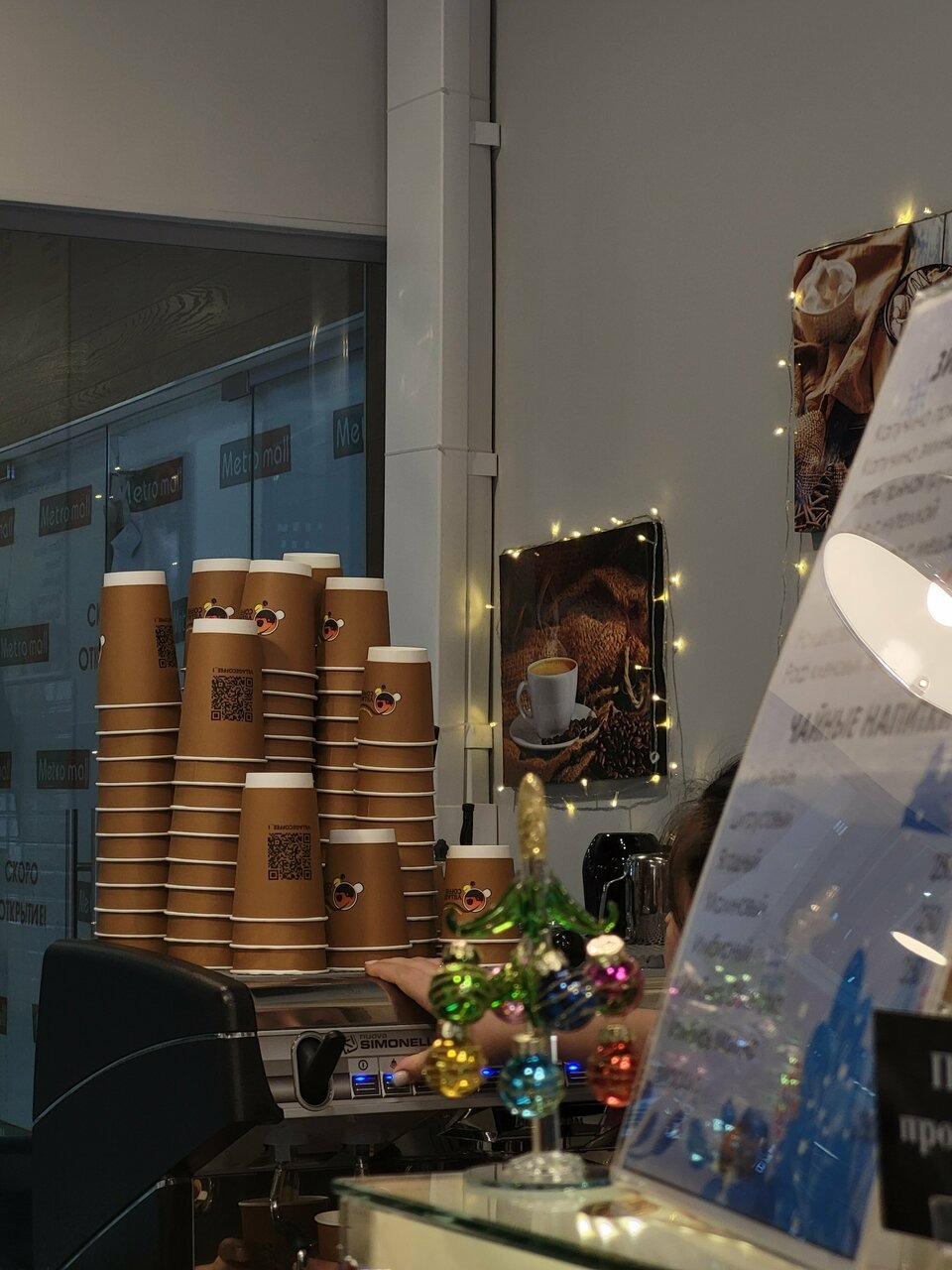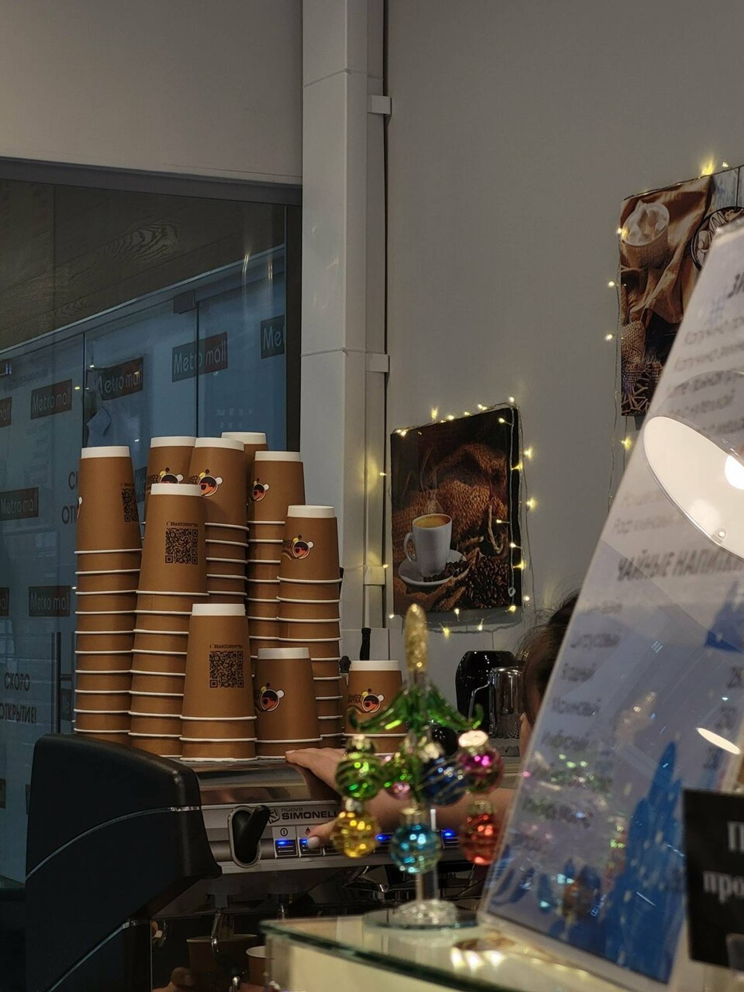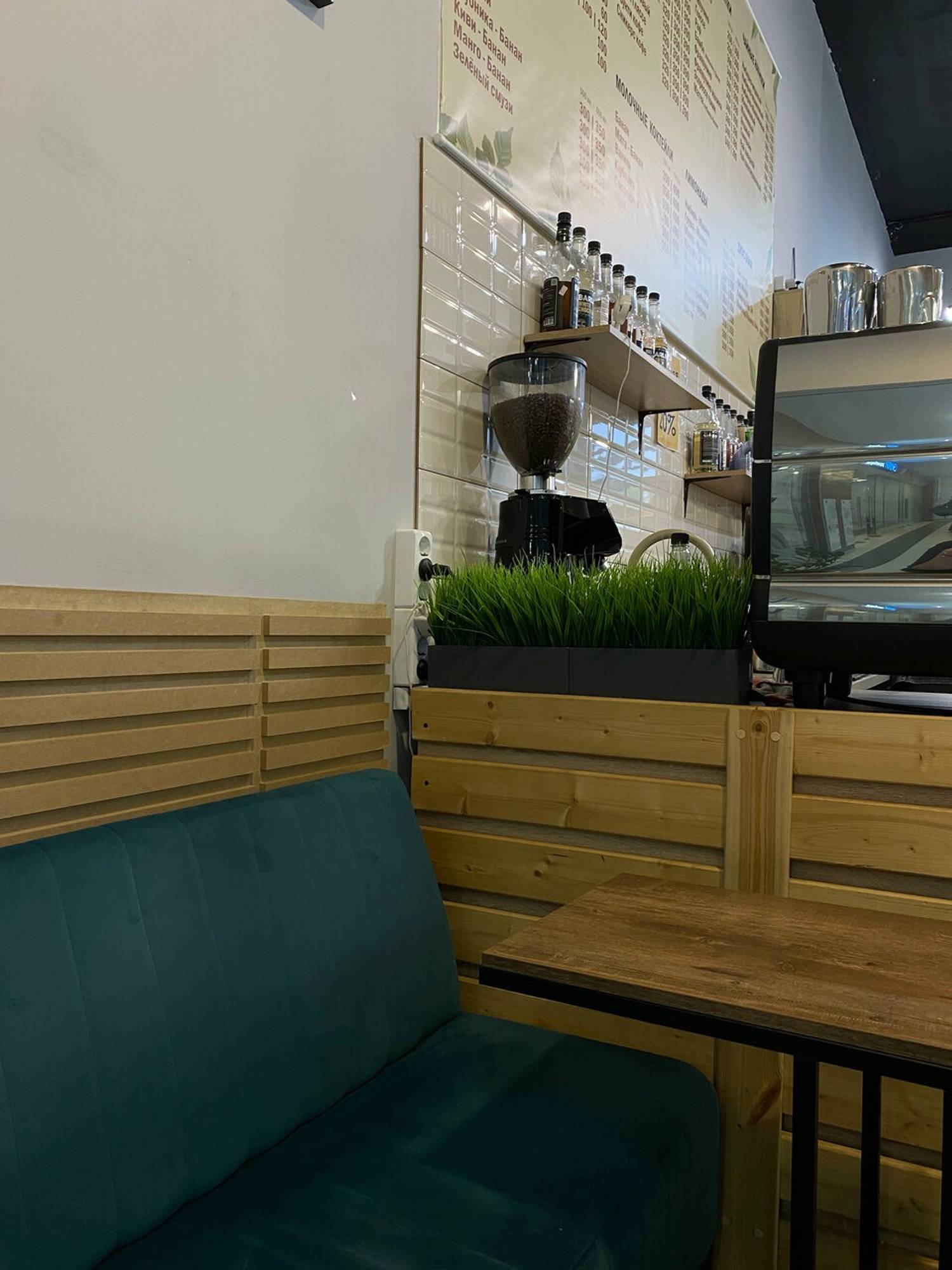 Атмосфера. Здесь есть как обычные стулья, так и мягкие кресла для тех, кто хочет расслабиться. На стенах — стилизованные картины с чашками кофе, которые создающие теплую и расслабляющую атмосферу.
