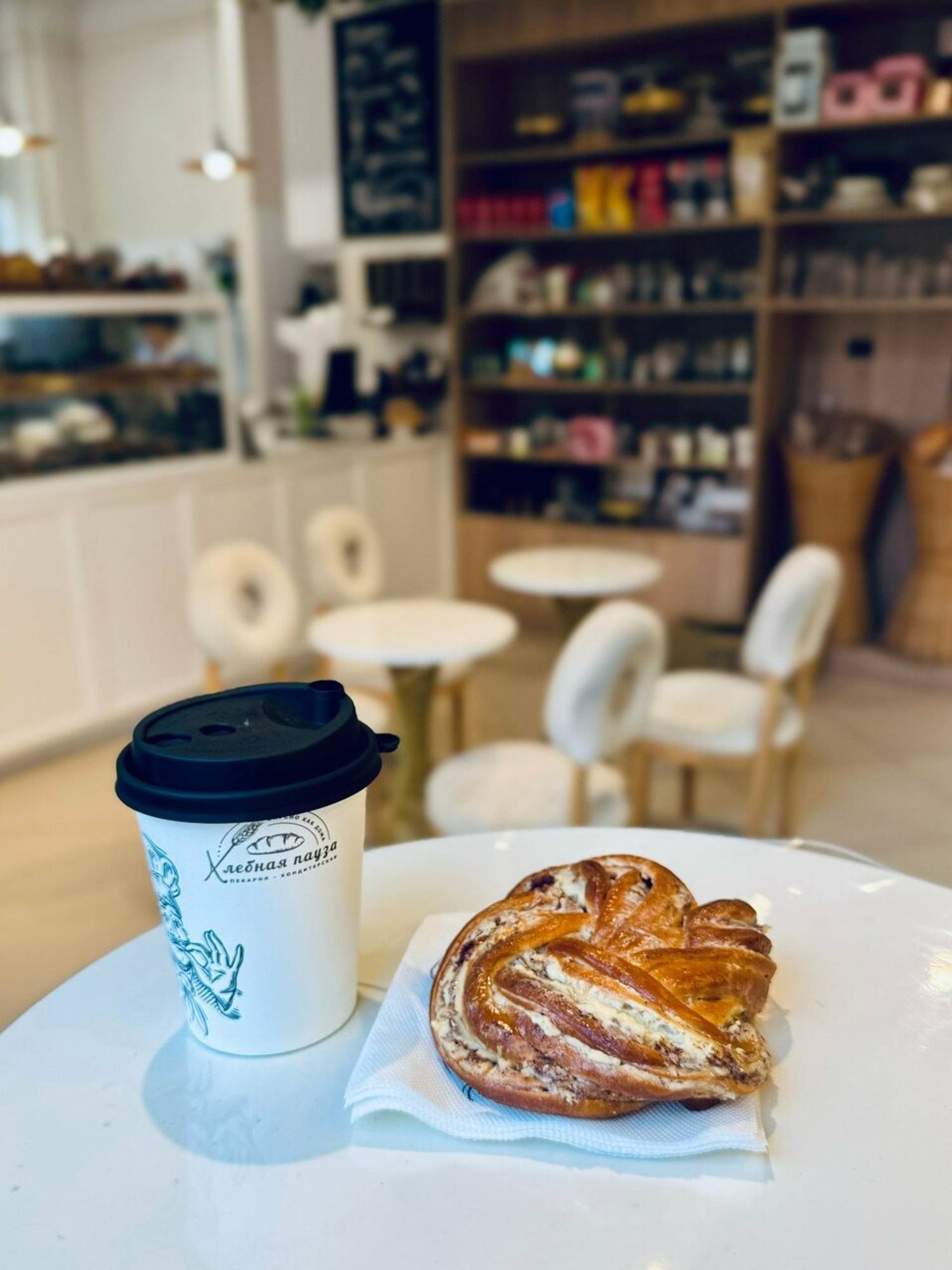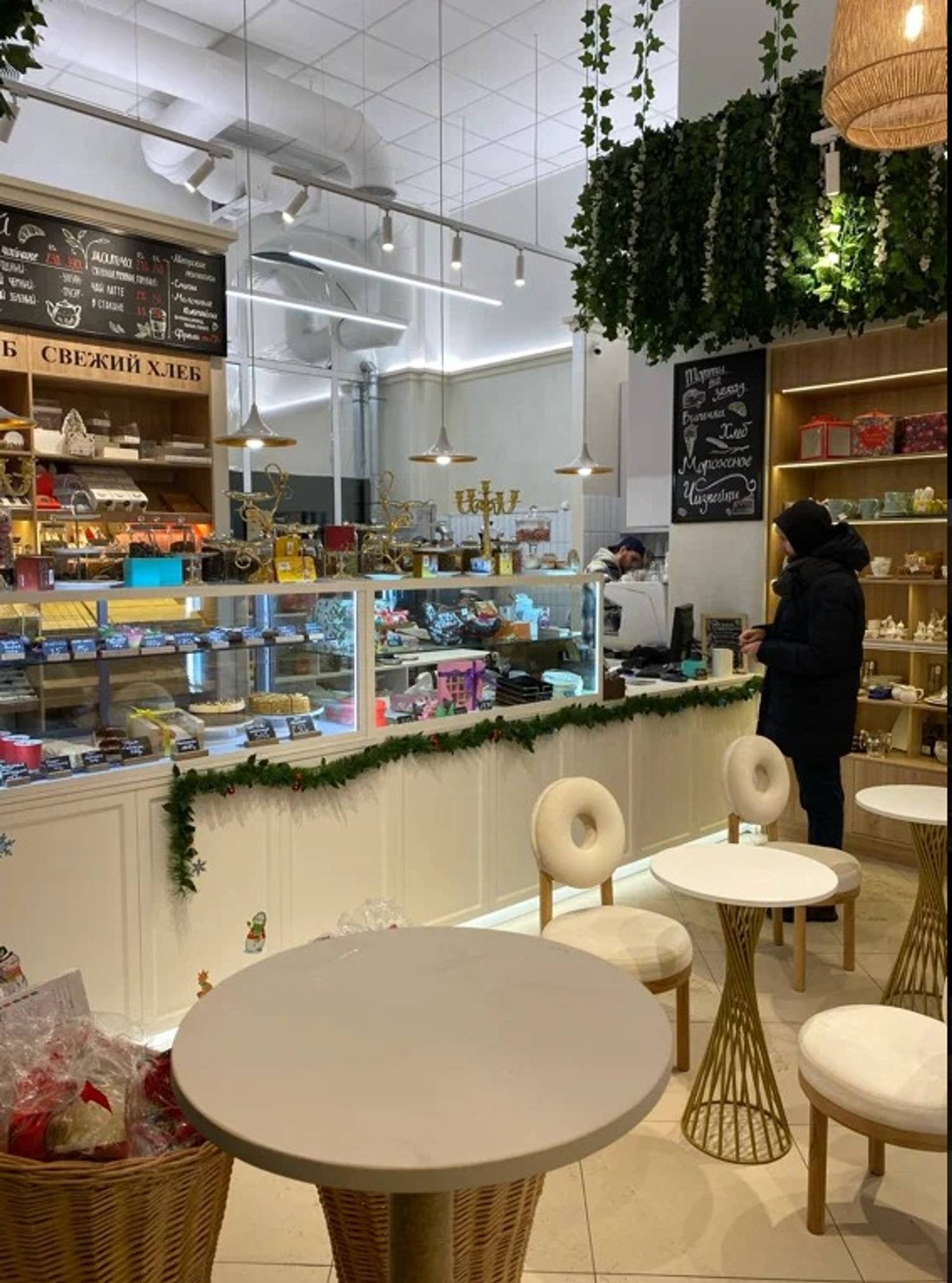Еда и напитки. В меню широкий выбор свежей выпечки: сдобные булочки, пироги, сезонные десерты и, конечно, душистый хлеб. К выпечке предлагают кофе: мокко, матча, горячий шоколад, колд блю, латте фисташка малина и лунго. Также есть десерты: меренговый рулет с вишней, карамельный медовик, сицилийский канноли, лимонный тарт и ромовая баба.
