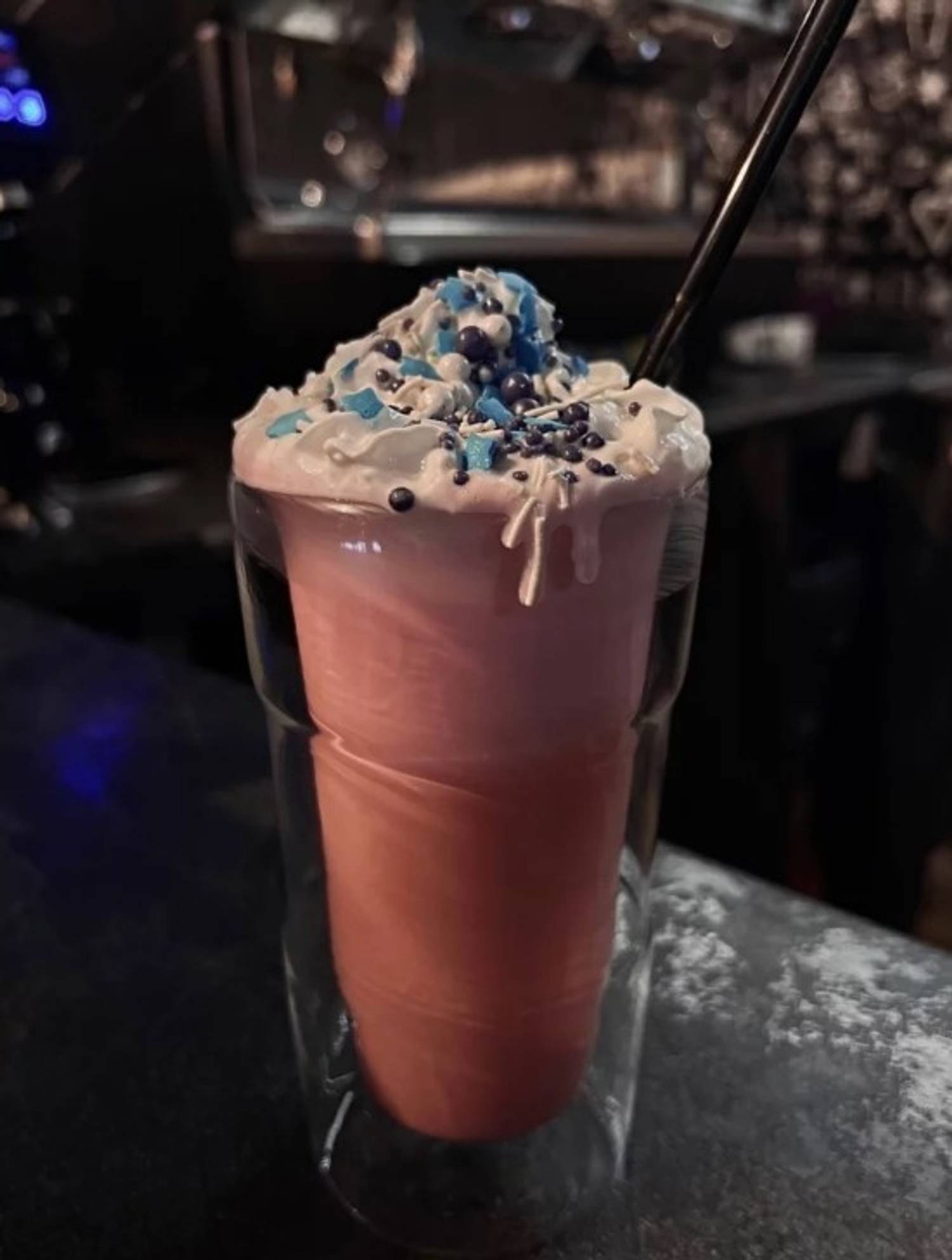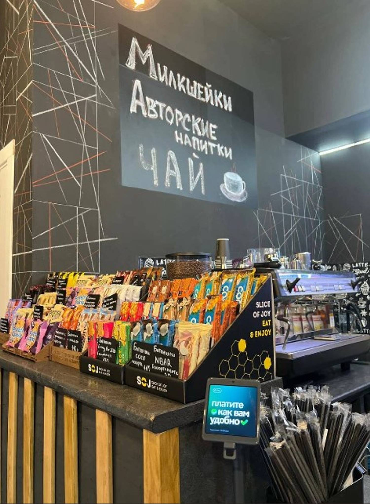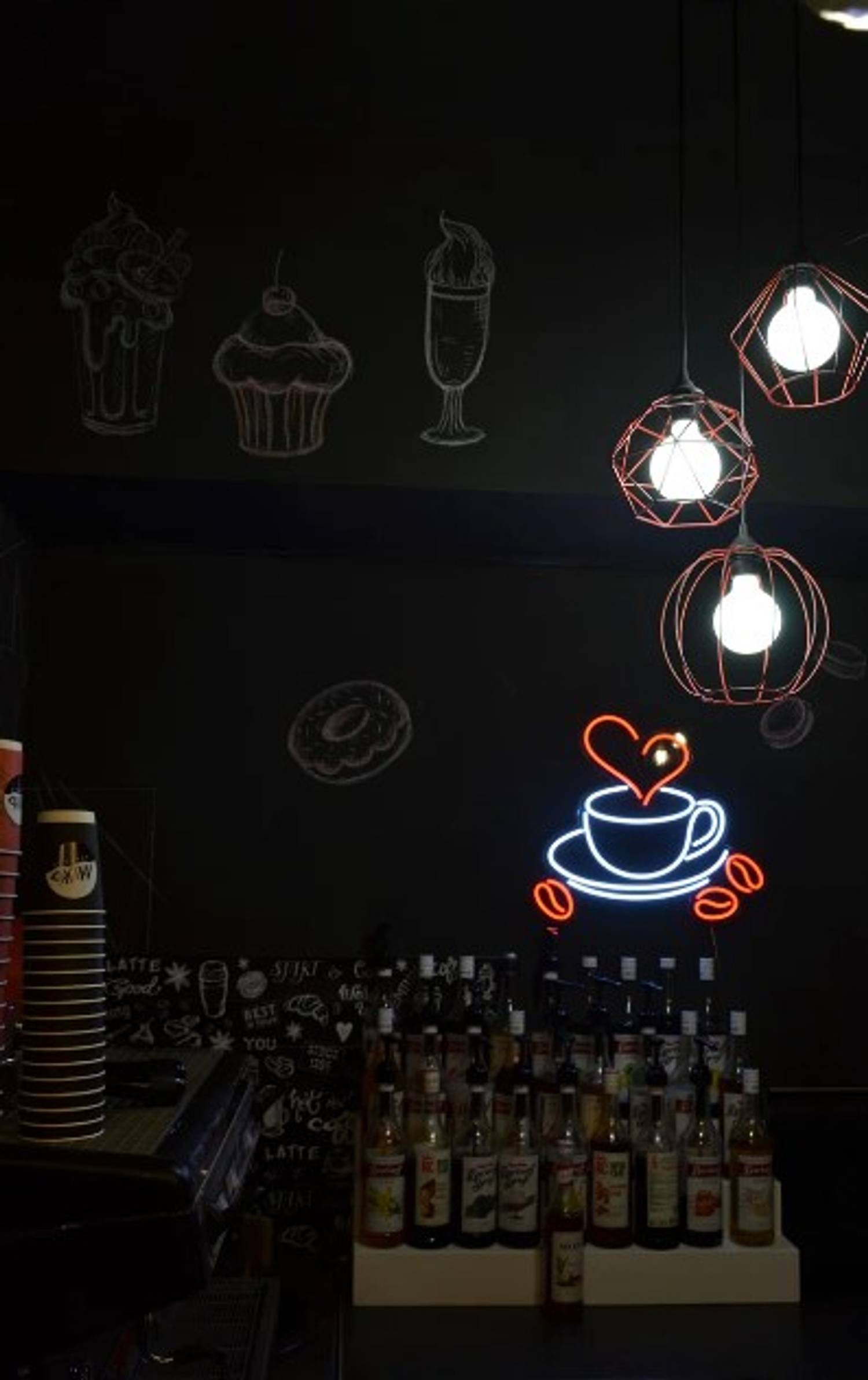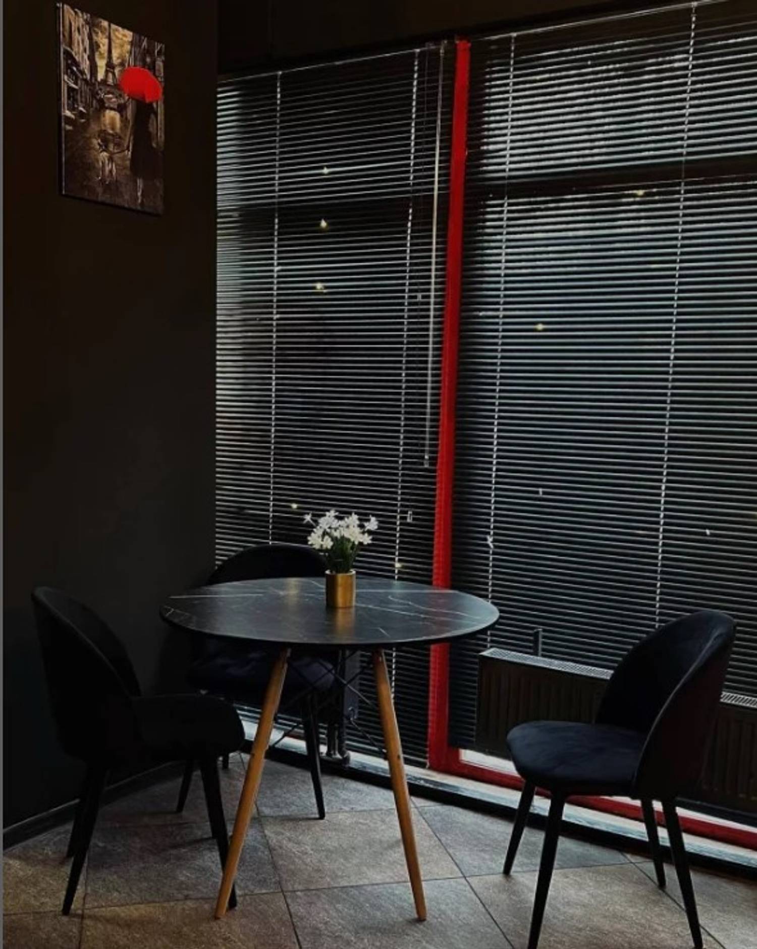 Интерьер сдержанный и продуманный: темная цветовая гамма дополнена акцентами в красных тонах, что придаёт пространству ритм и характер. В меню — напитки на базе эспрессо. Можно выбрать классический капучино, латте или попробовать авторские сочетания со специями, карамелью, фруктовыми сиропами и мягкой текстурой. Милкшейки — как дополнение к десертной части, лёгкие, сливочные и визуально эффектные.