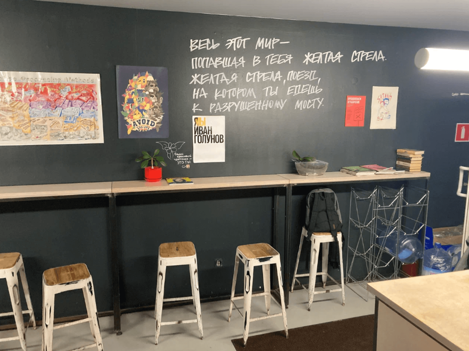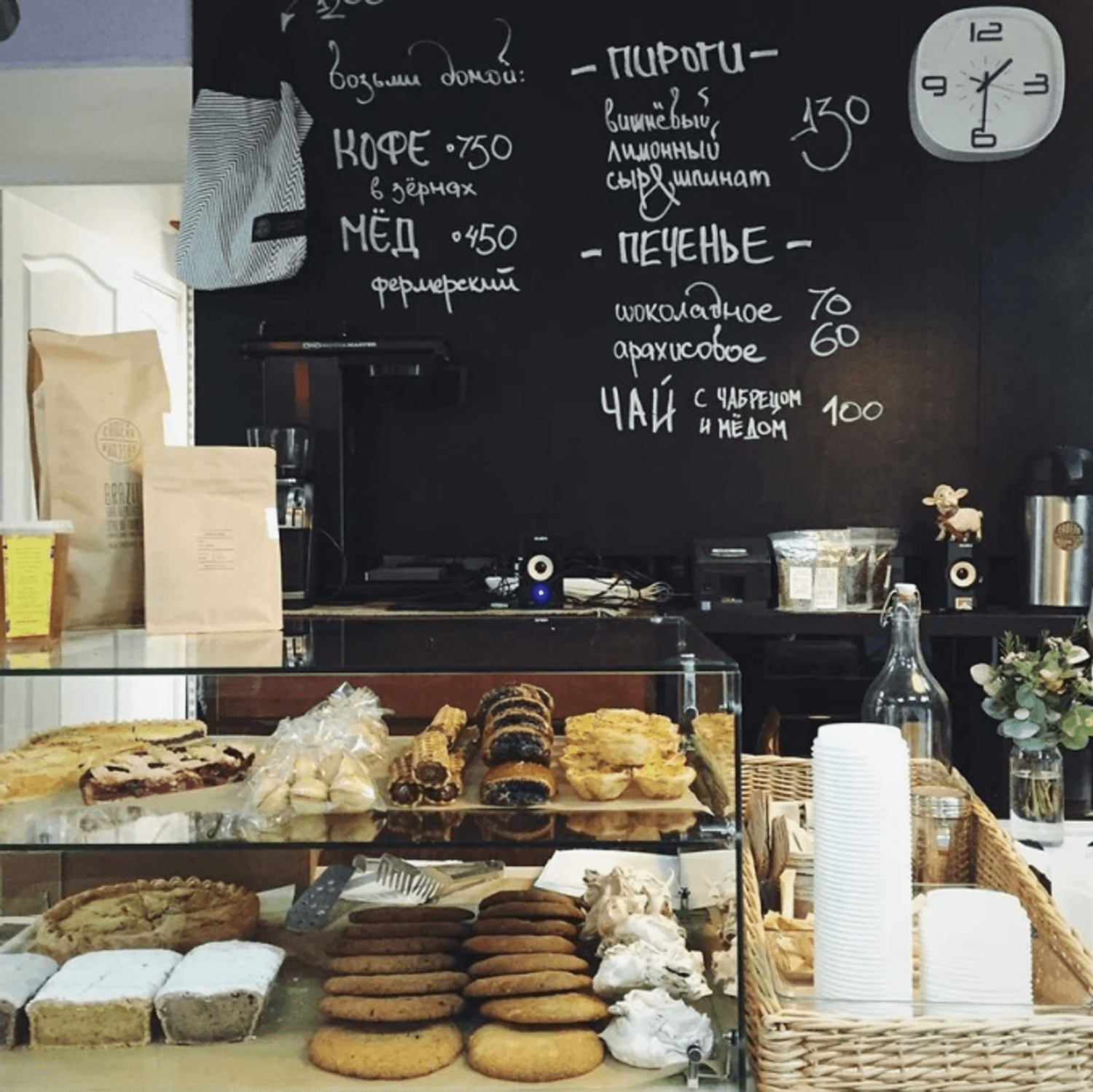 Еда и напитки. Помимо классического американо и флэт-уайта, здесь готовят авторские рафы (ванильный, цитрусовый, пряный) и латте с халвой. В десертах преобладают кексы — от морковного с орехами до шоколадного с пористой текстурой, а также подают канелле и трубочки со сгущенкой.