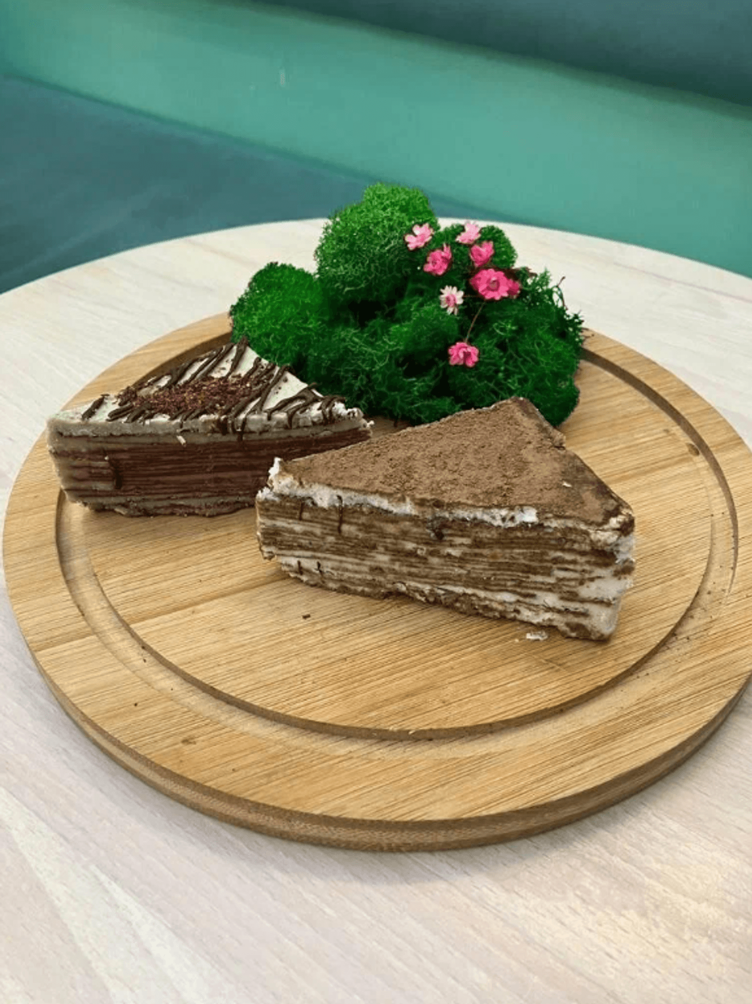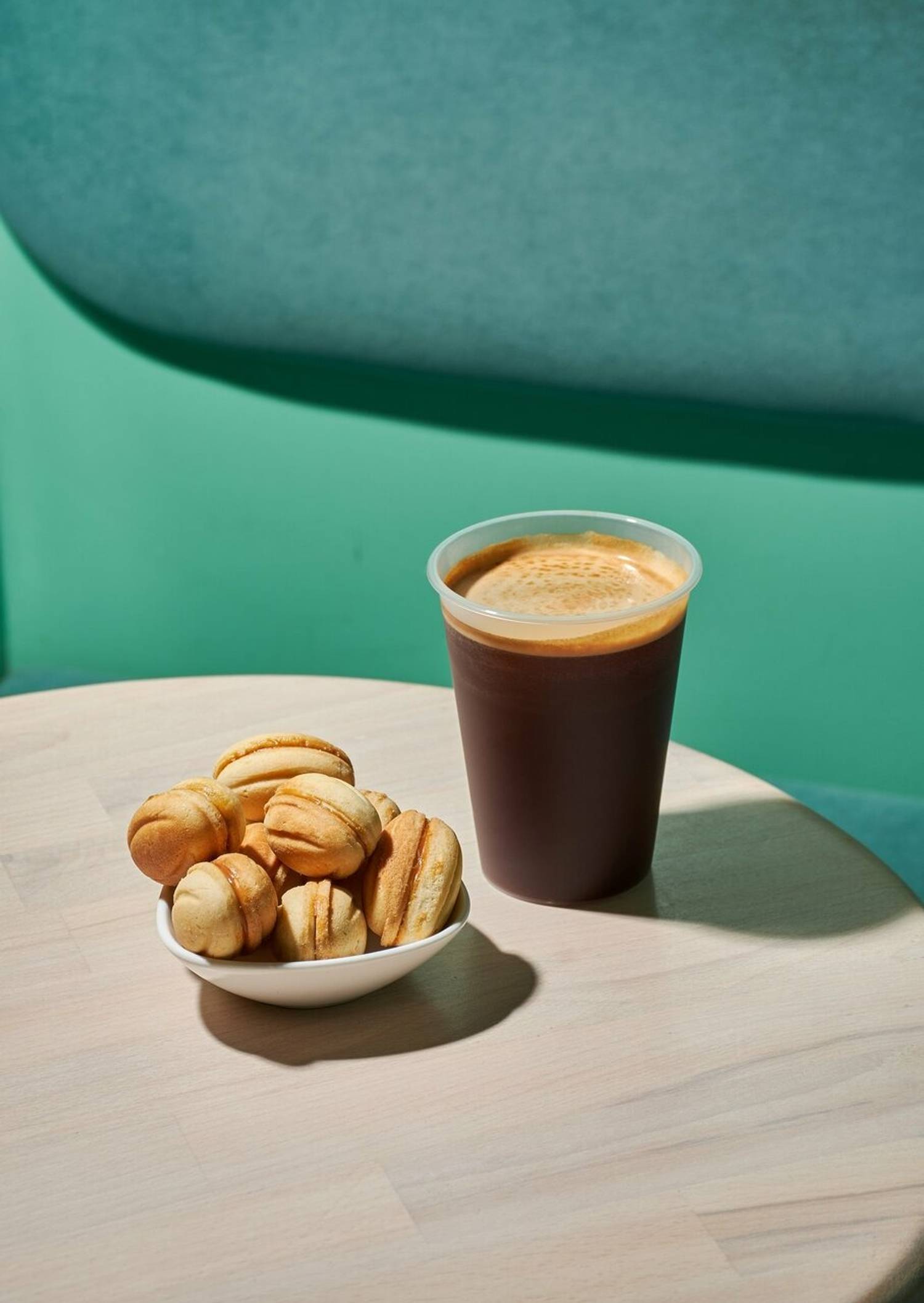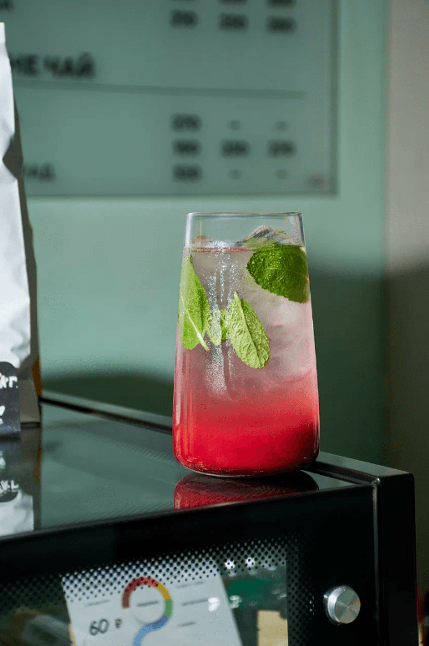 Еда и напитки. В меню — разнообразие кофейных напитков: эспрессо, капучино и латте, фильтр-кофе. Также готовят голубую и зеленую матчу латте, гранатно-имбирный облепиховый пунш. Летом можно заказать ванильный бабл ти или с манговым муссом.