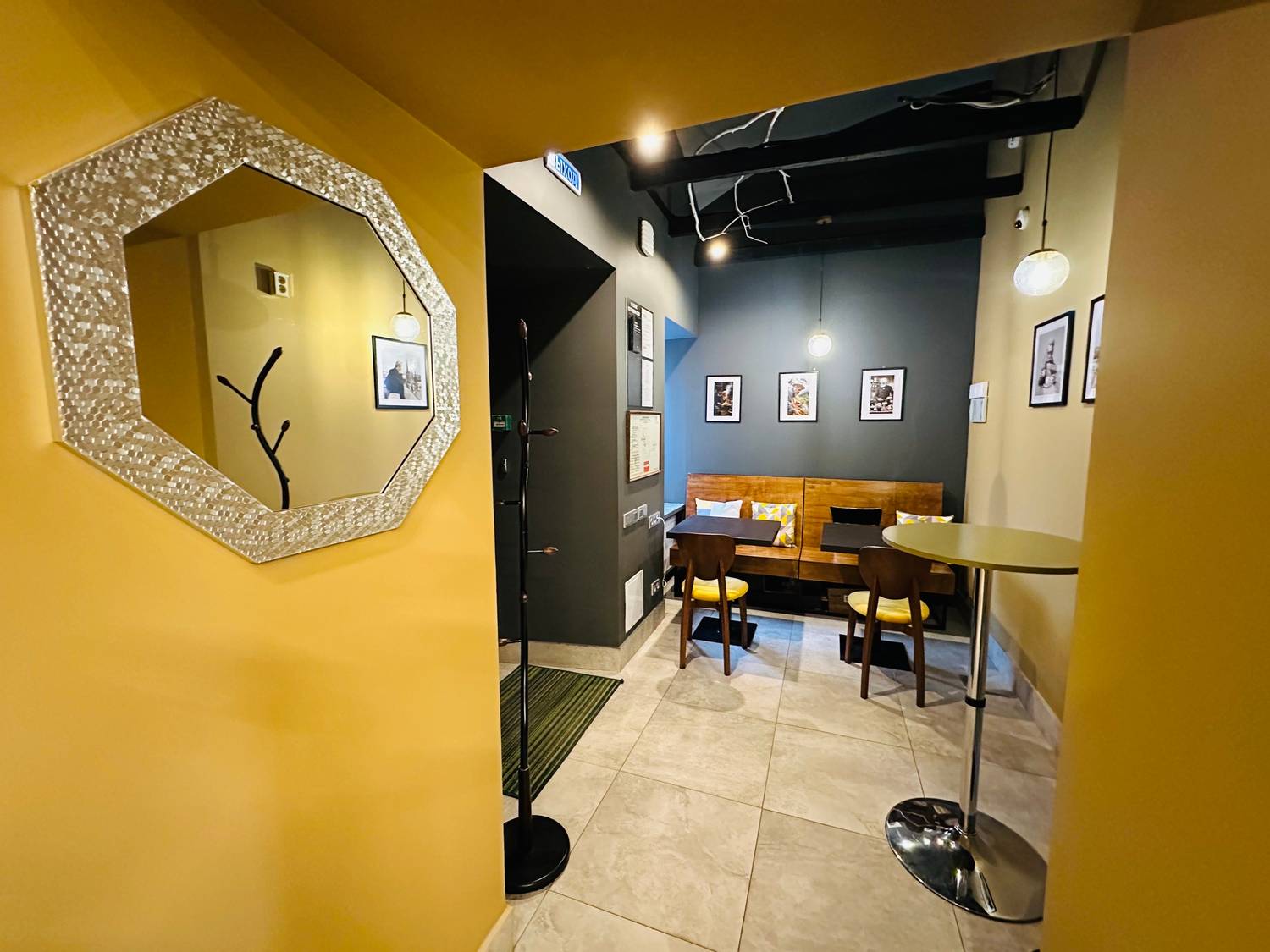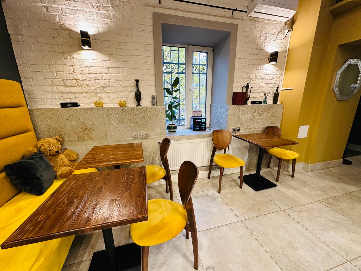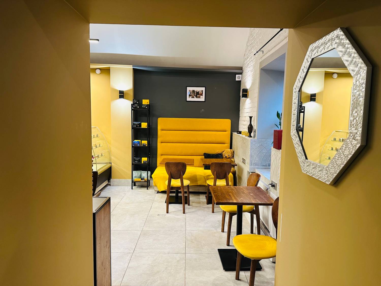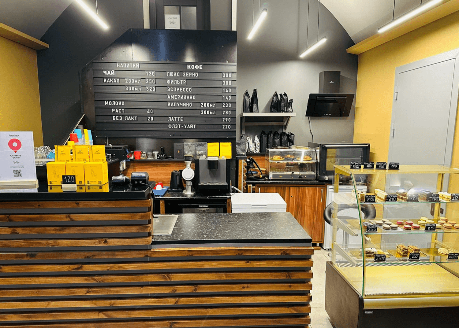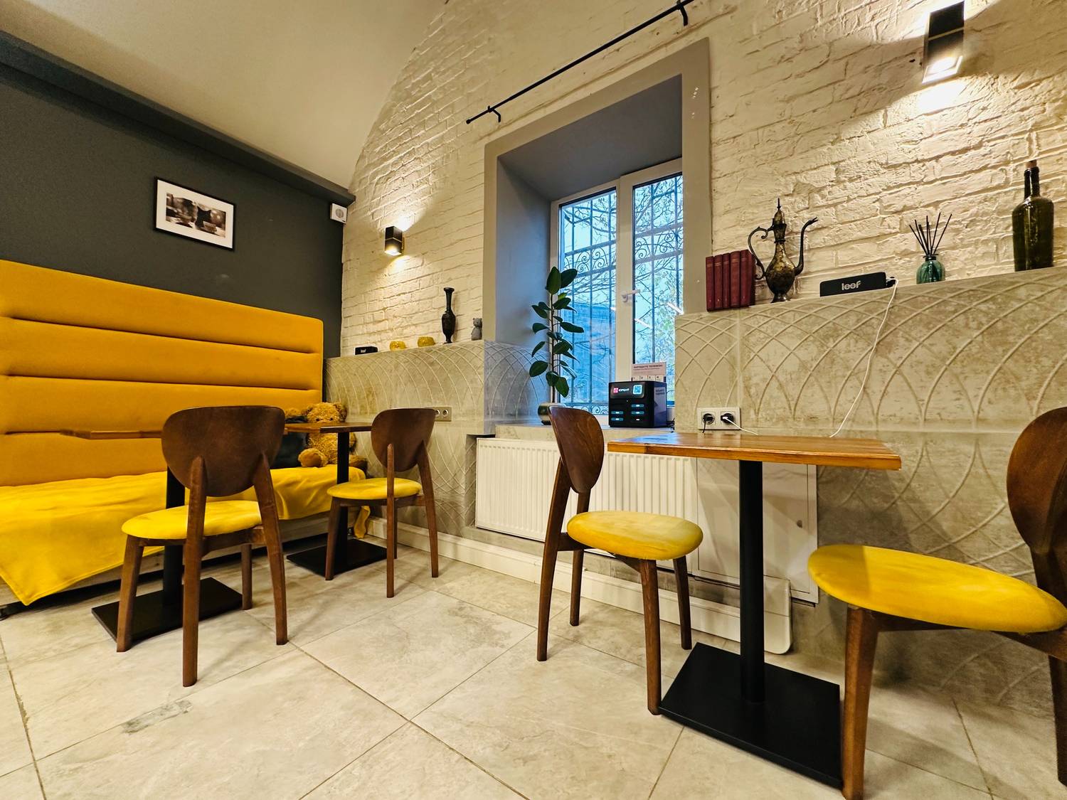 Атмосфера. Лаконичное пространство с минималистичным интерьером создает фон для того, чтобы все ваше внимание было сосредоточено на кофе. Главный цвет всего помещения — ярко-желтый, а столы из светлого дерева и приглушенное освещение лишь дополняют эту яркость, не перегружая ее.