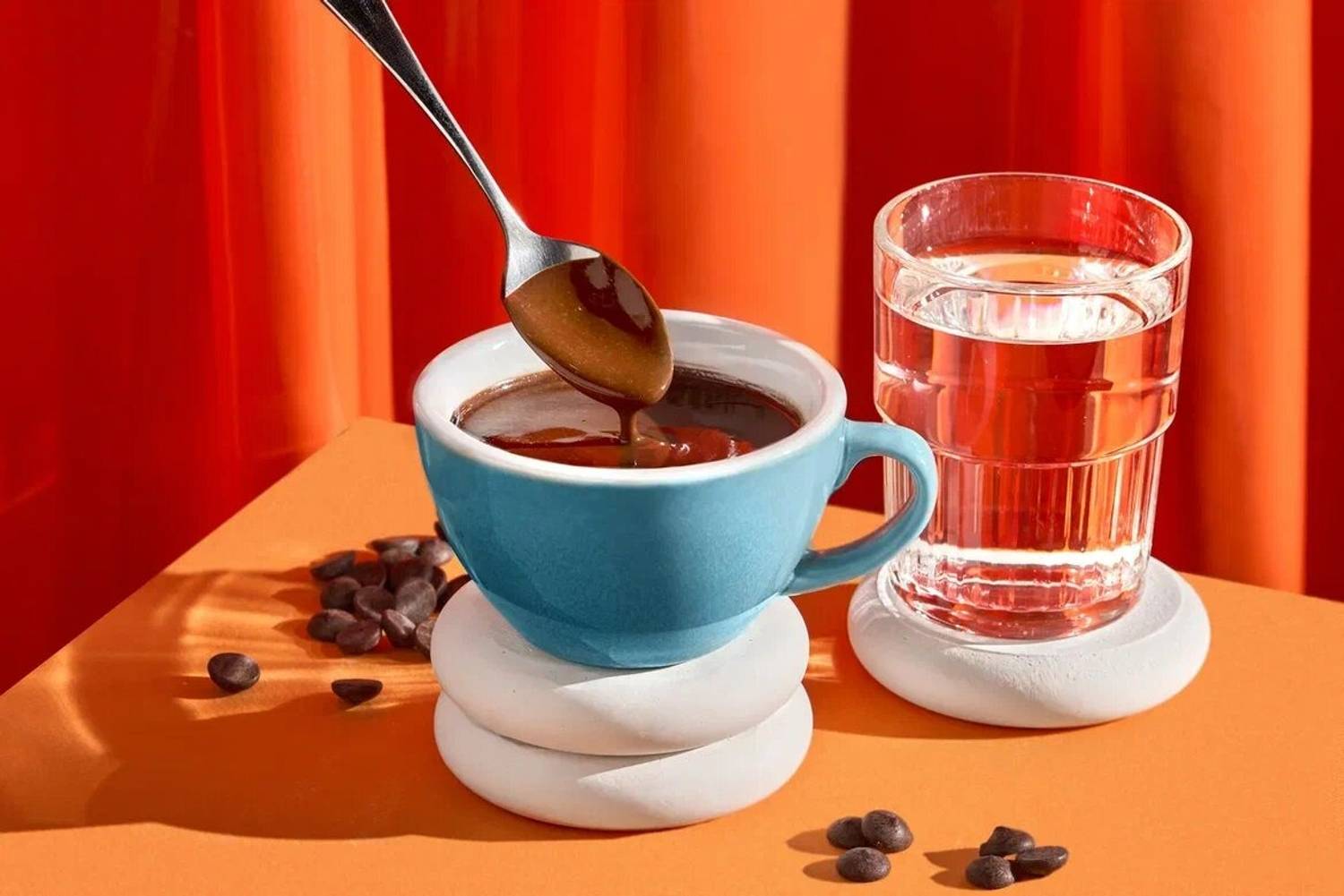 Зачем идти. Чтобы сделать фотографии с чашкой с эстетичным синем освещением.