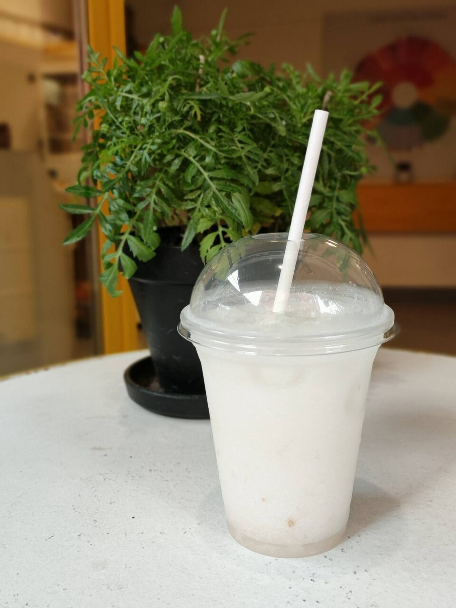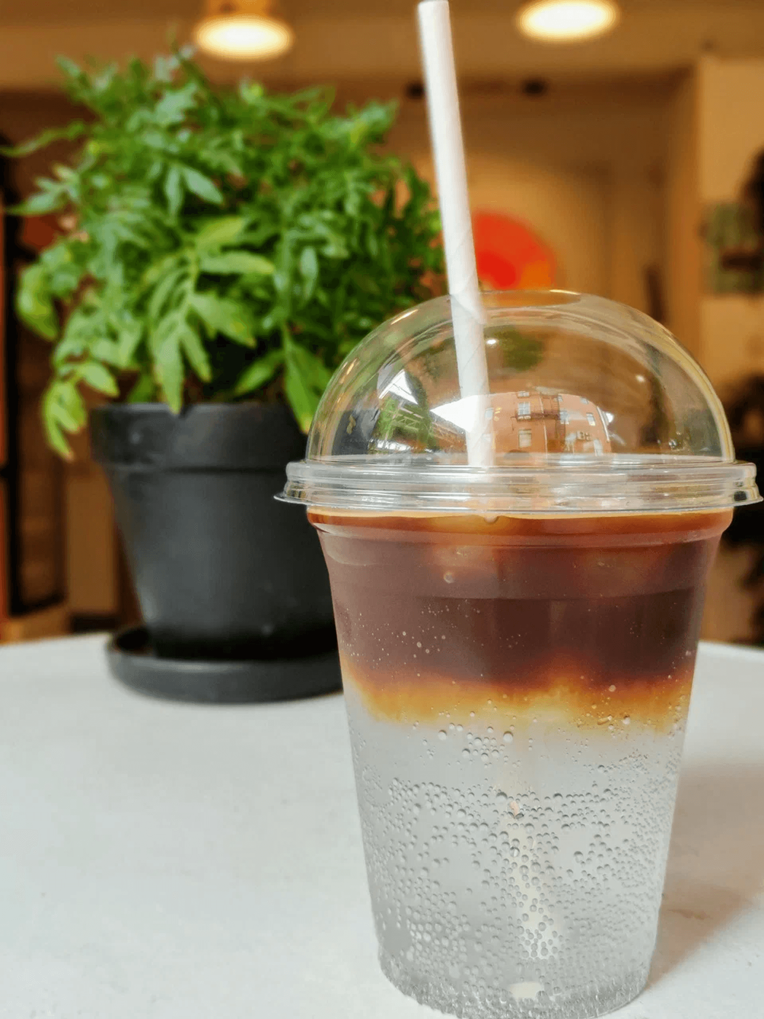 Еда и напитки. В меню — классический кофе, какао, матча чай-латте, пуэр. Также можно заказать трубочку со сгущенкой, круассан миндальный, сырный и с маком.