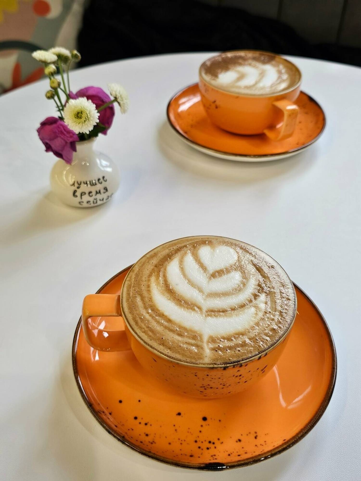 Еда и напитки. В меню — эспрессо, капучино, латте и другие классические варианты, которые готовят с тем же вниманием, с каким здесь собирают букеты.